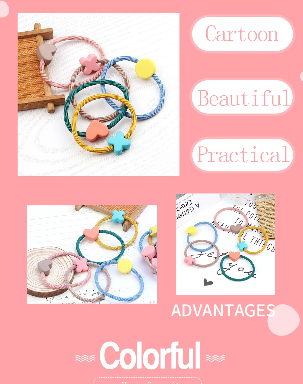 Color: green, Ships From: CHINA - Cute Girls Hair Bands Ties Round Heart Rubber Band Fashion Scrunchie Elastic Korean Hair Accessories Ponytail Holder Headband