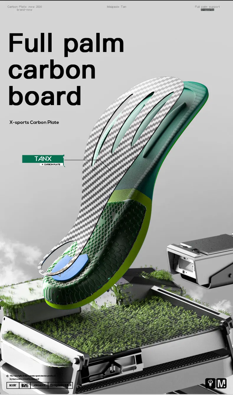 Color: green, Shoe Size: 2.5 - Maigaole Racing Running Insole Marathon Physical Examination Full-Length Real Carbon Plate Running Enhancement with Speed Rebound