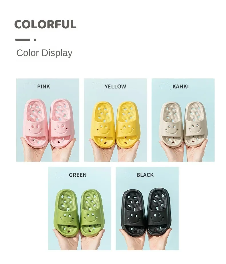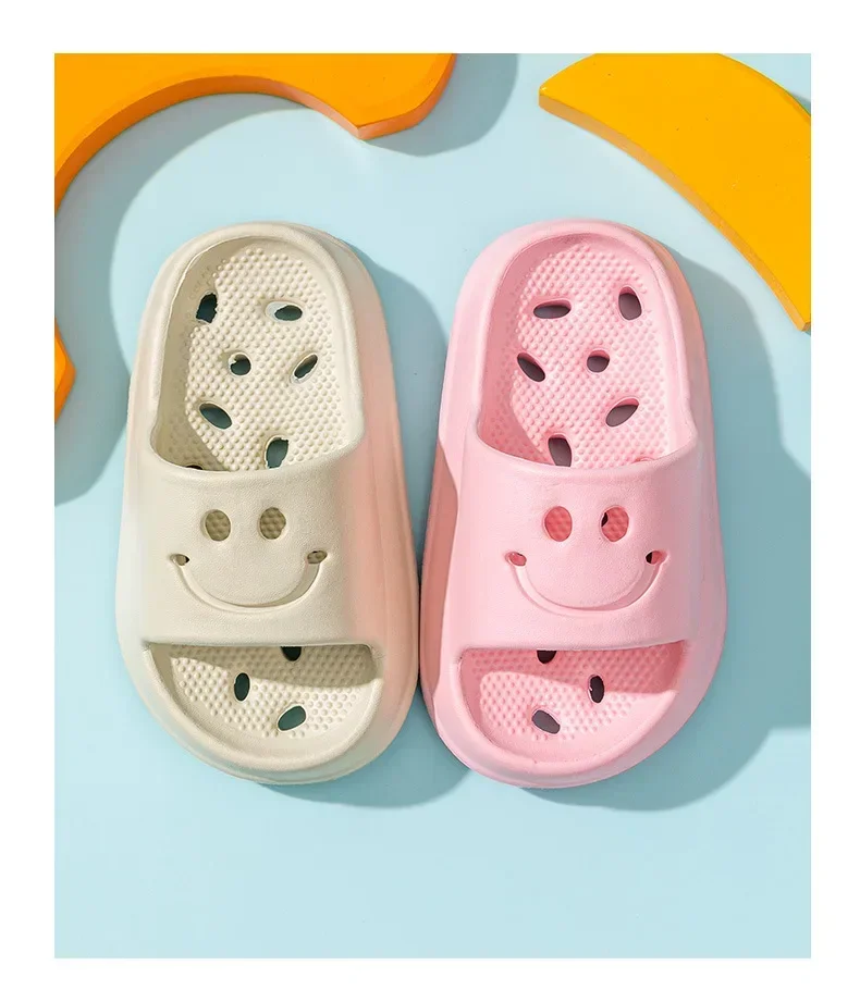 Children Slippers Boys EVA Smiling Face Bathroom Slippers Summer 2-14 Years Old Girl Anti Slip Hollow Leaking Junior Footwear