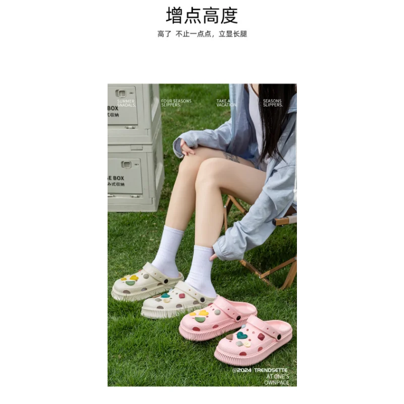 Color: green, Shoe Size: 38-39 - Shoes hole shoes girls wear outside couple bag head women cool slippers