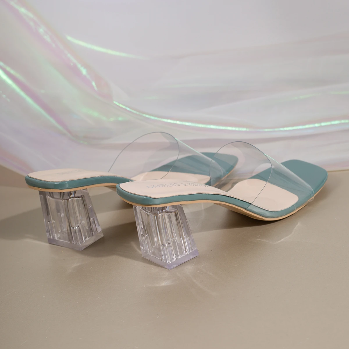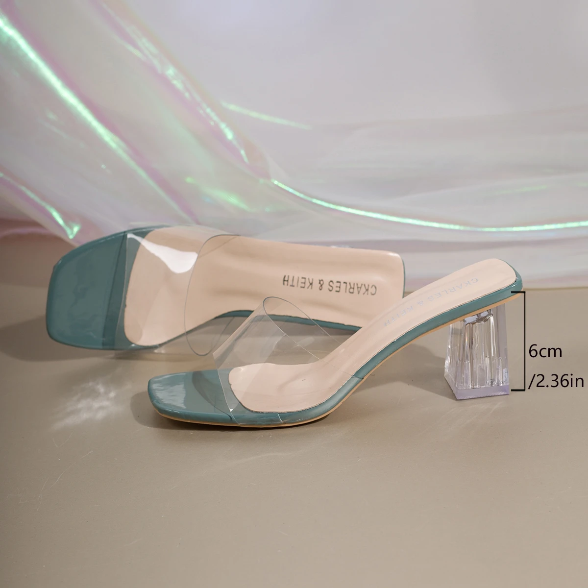 Color: green, Shoe Size: 38 - Fashionable and Elegant Women's High-heeled Sandals with Thick Heels and Square Heads, New Transparent Casual Versatile Sandals