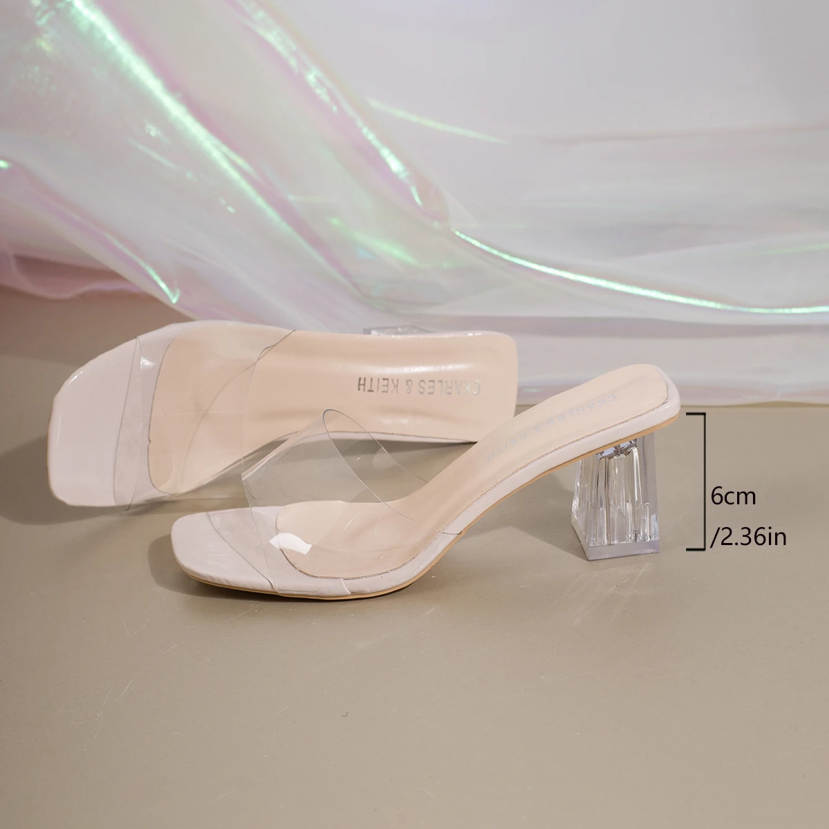 Color: green, Shoe Size: 40 - Fashionable and Elegant Women's High-heeled Sandals with Thick Heels and Square Heads, New Transparent Casual Versatile Sandals