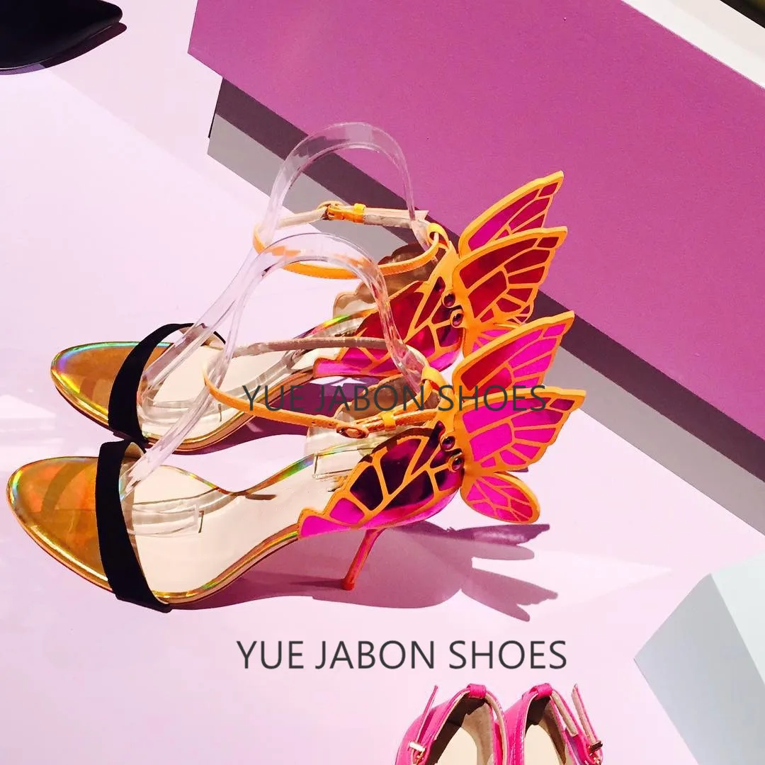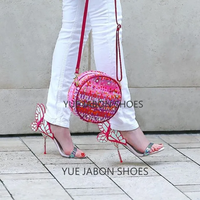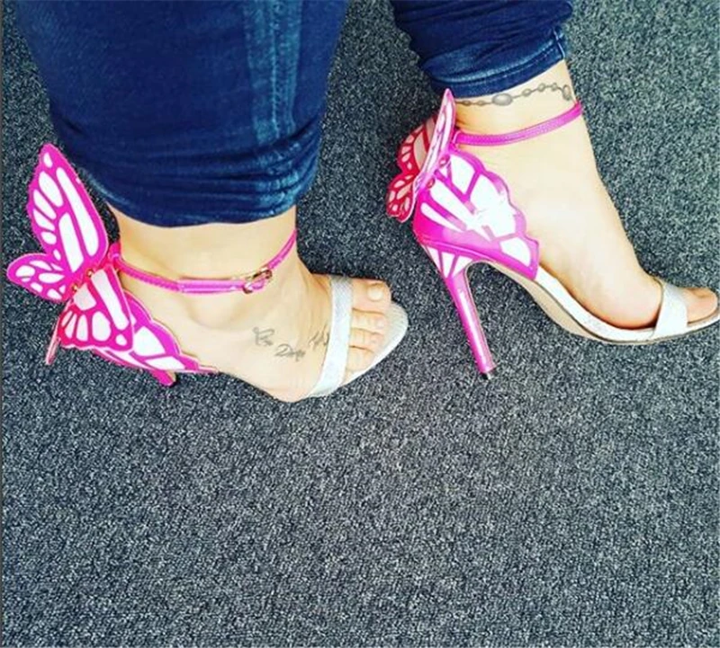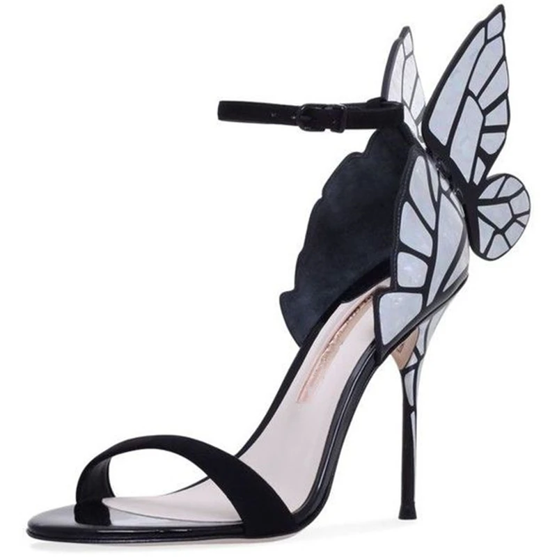 Color: Green, Shoe Size: 5 - Women Summer Sandals Fashion Embroidered Satin Butterfly High Heeled Footwear Adjustable Ankle Strap Shoes Women high heels