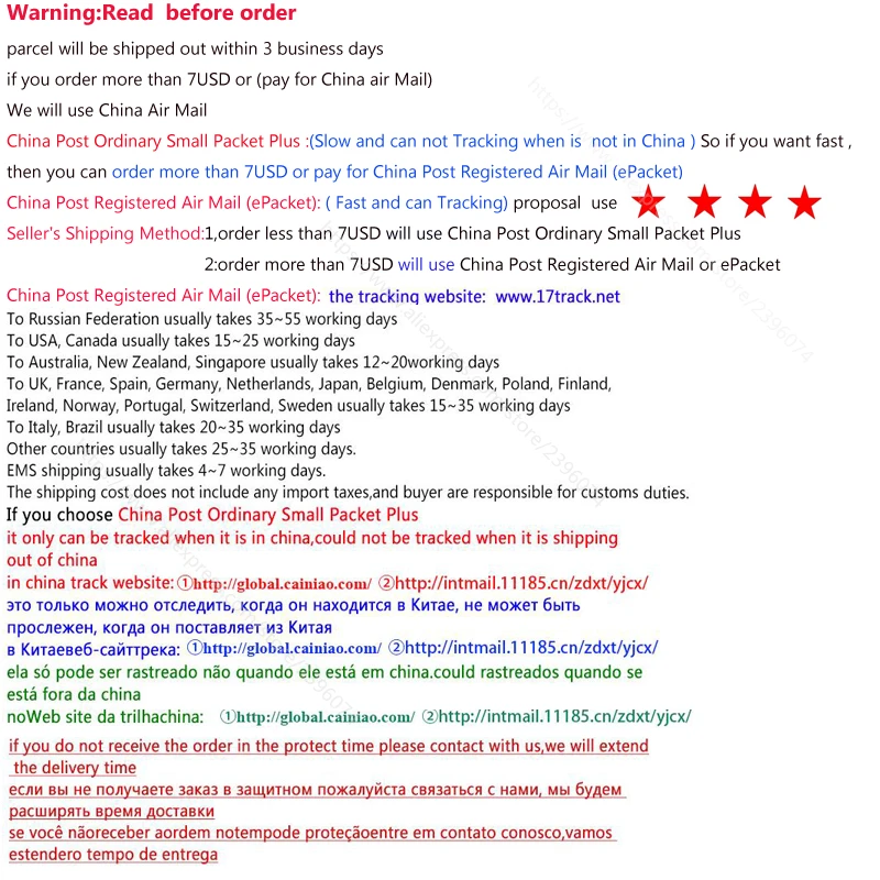 Please do contact us before leaving a Neutral or Negative feedback. As a serious and responsible seller, we will try our best to solve your problem. Your comment is very important in our business success. If you are satisfied with your purchase and our service, please take a minute to leave us a positive feedback with an overall Detailed Selling Rating (DSR) of 5.