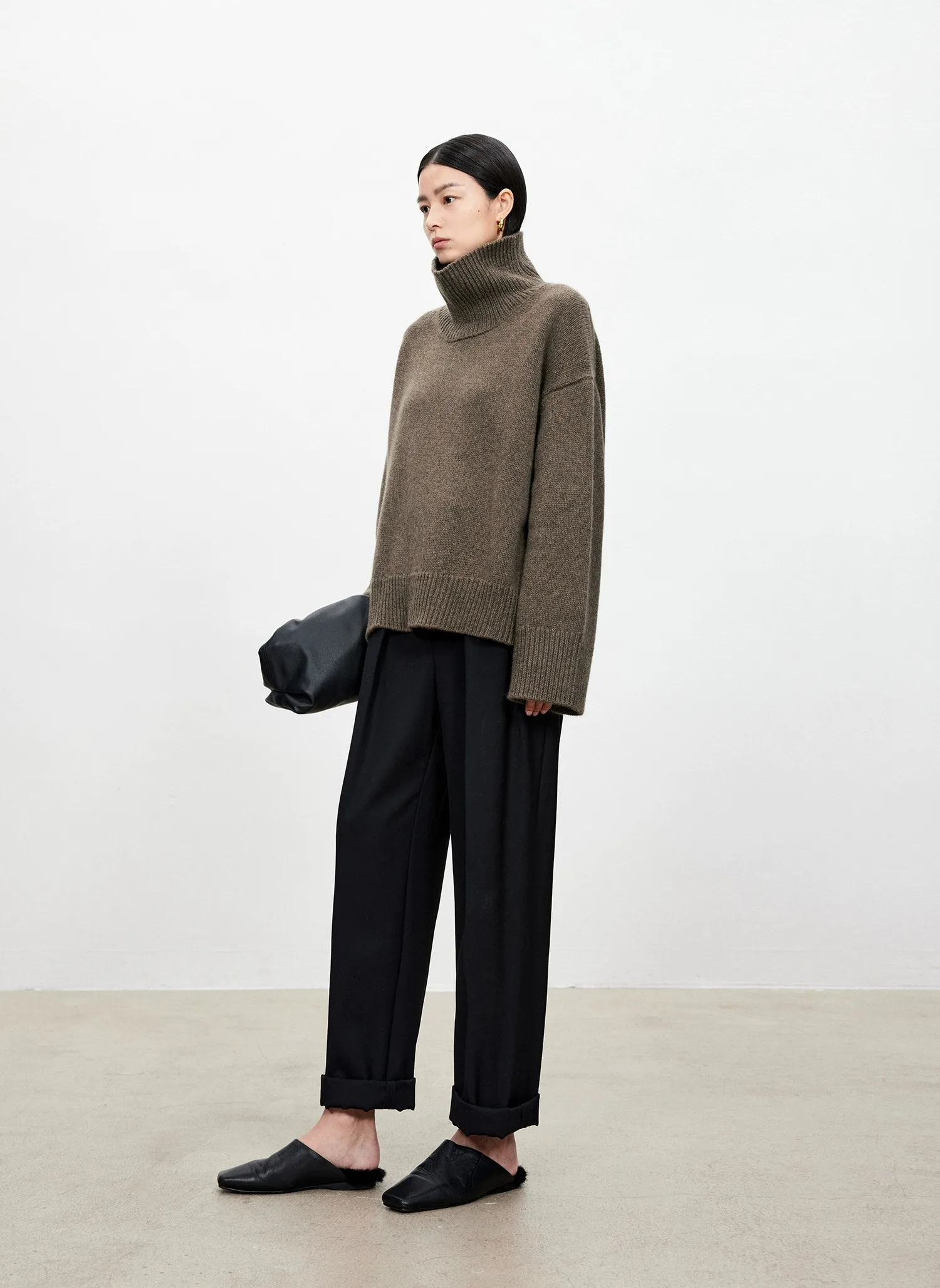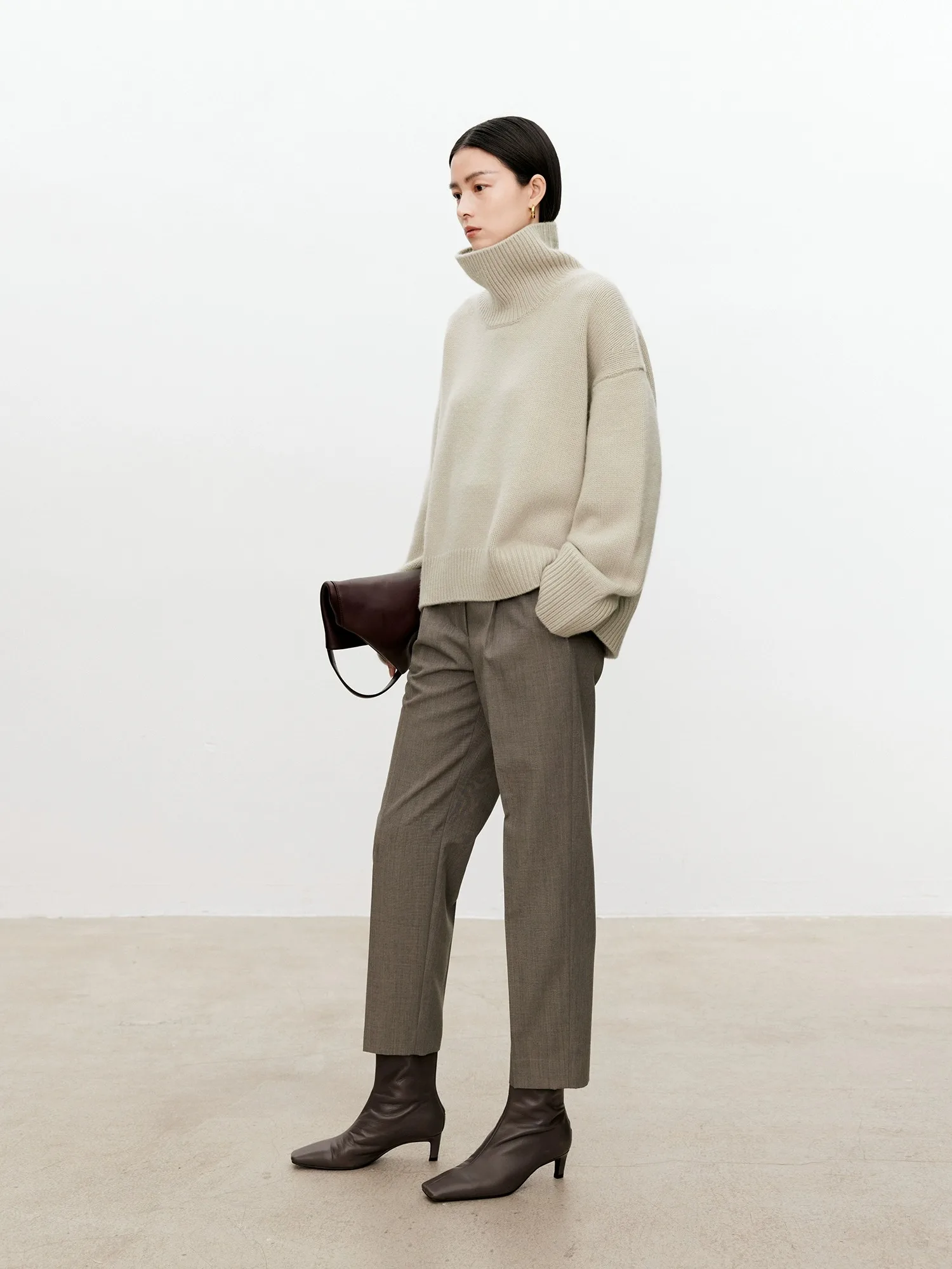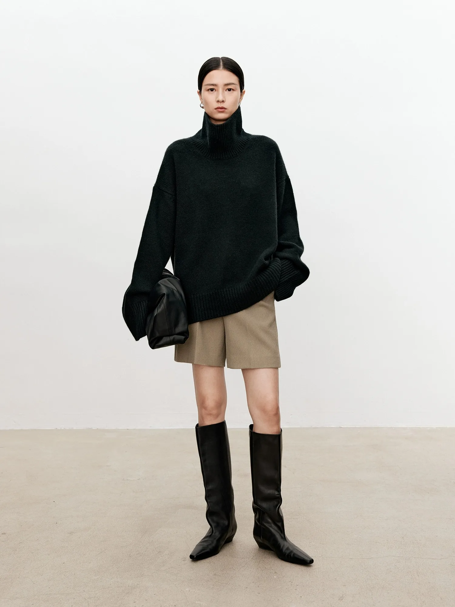 Color: green, Size: L, Ships From: CHINA - Turtleneck pure cashmere sweater female loose and thick languid lazy wind pullover sweater knitting base WOOL sweater