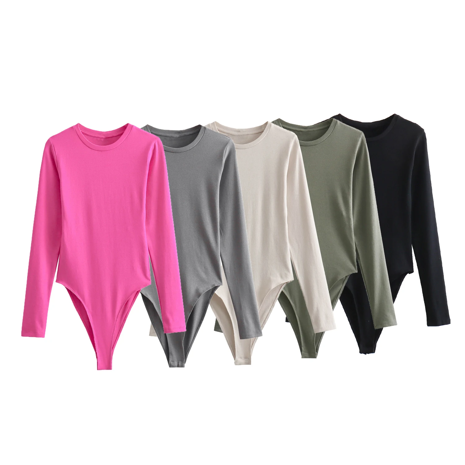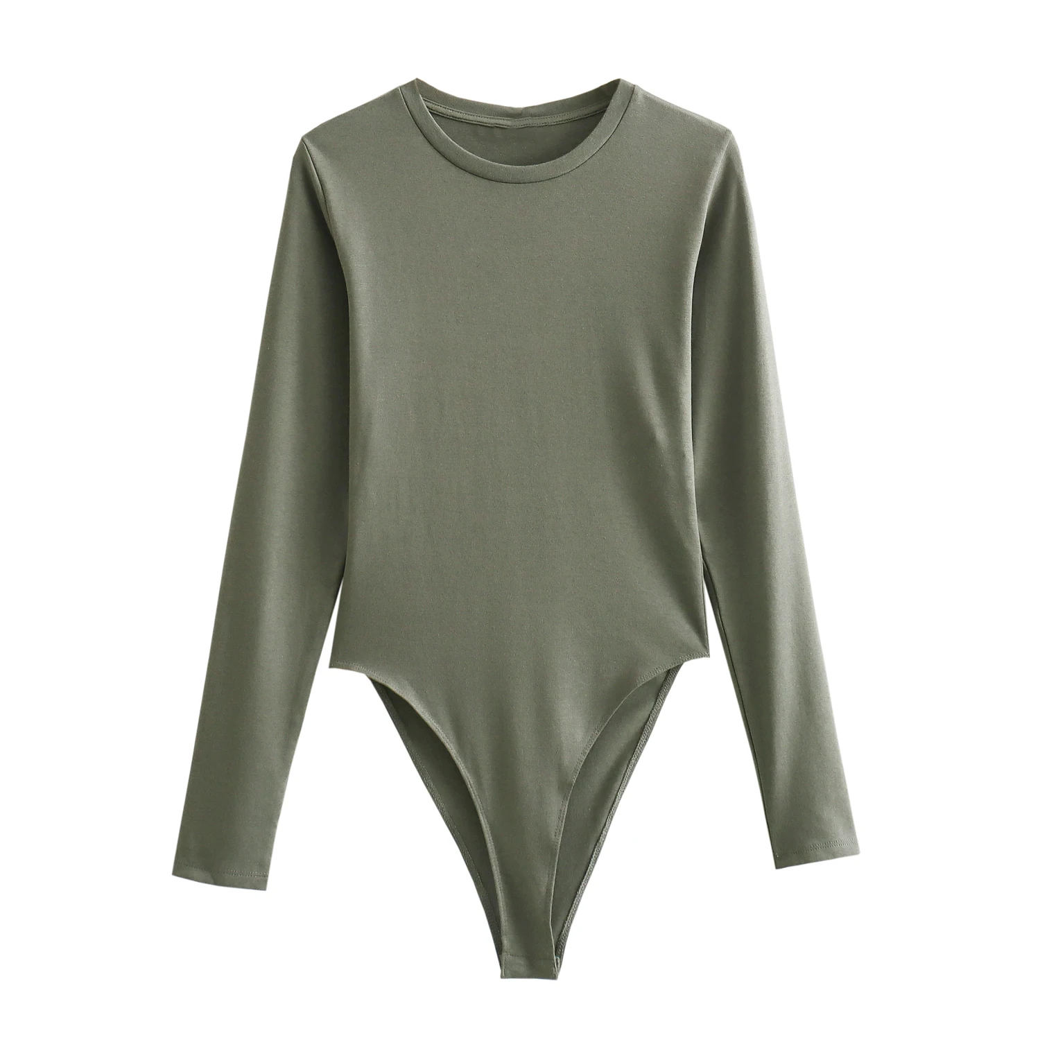 Color: green, Size: M - XNWMNZ Women's Fashion 2023 Long sleeved Modal Bodysuit Women High Street Versatile Round Neck Slim Female Chic Bodysuit