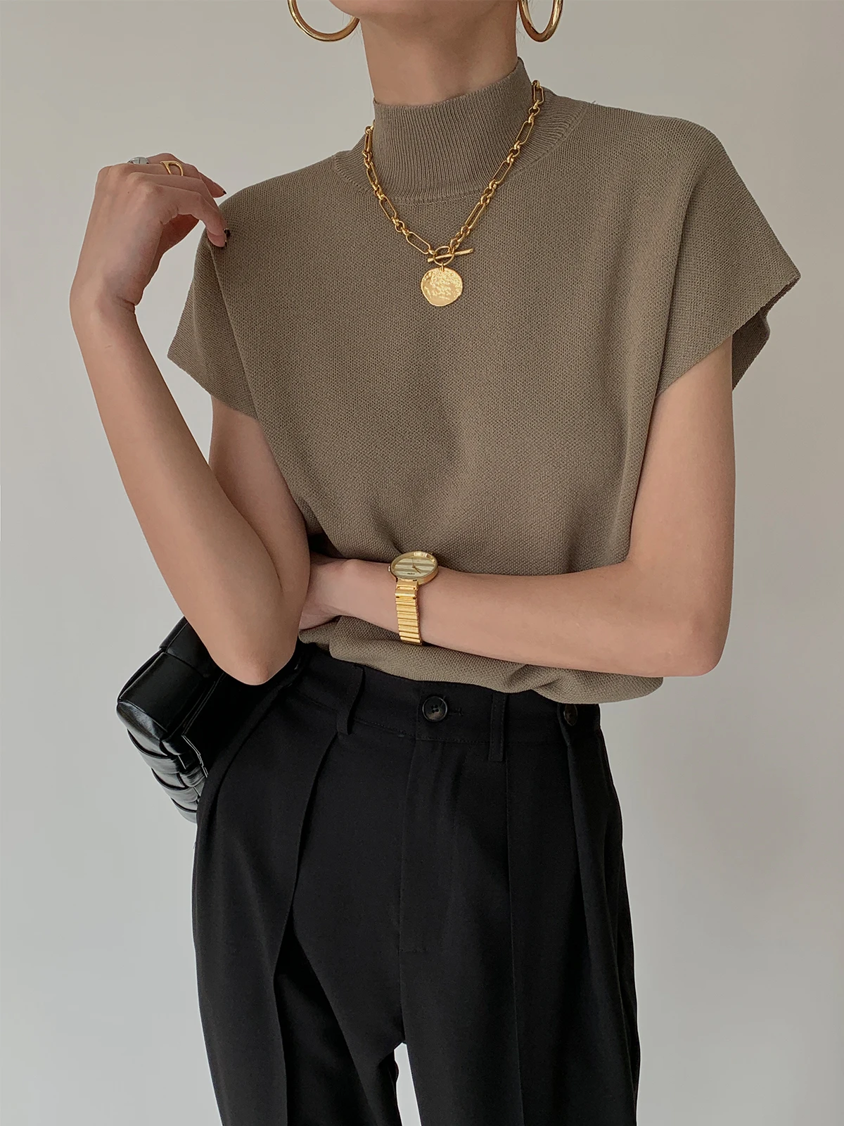 Color: green, Size: One Size - New Short Sleeve Turtleneck Knitted Women Sweater Pullover Casual Knit Sweater Women Tops Blusas Mujer De Moda 2024 Verano J74