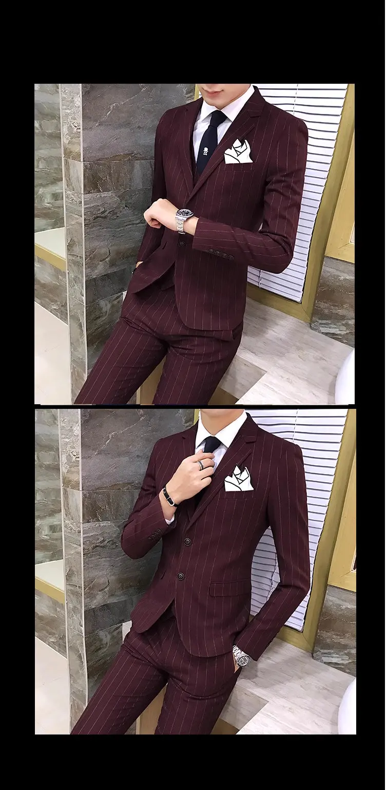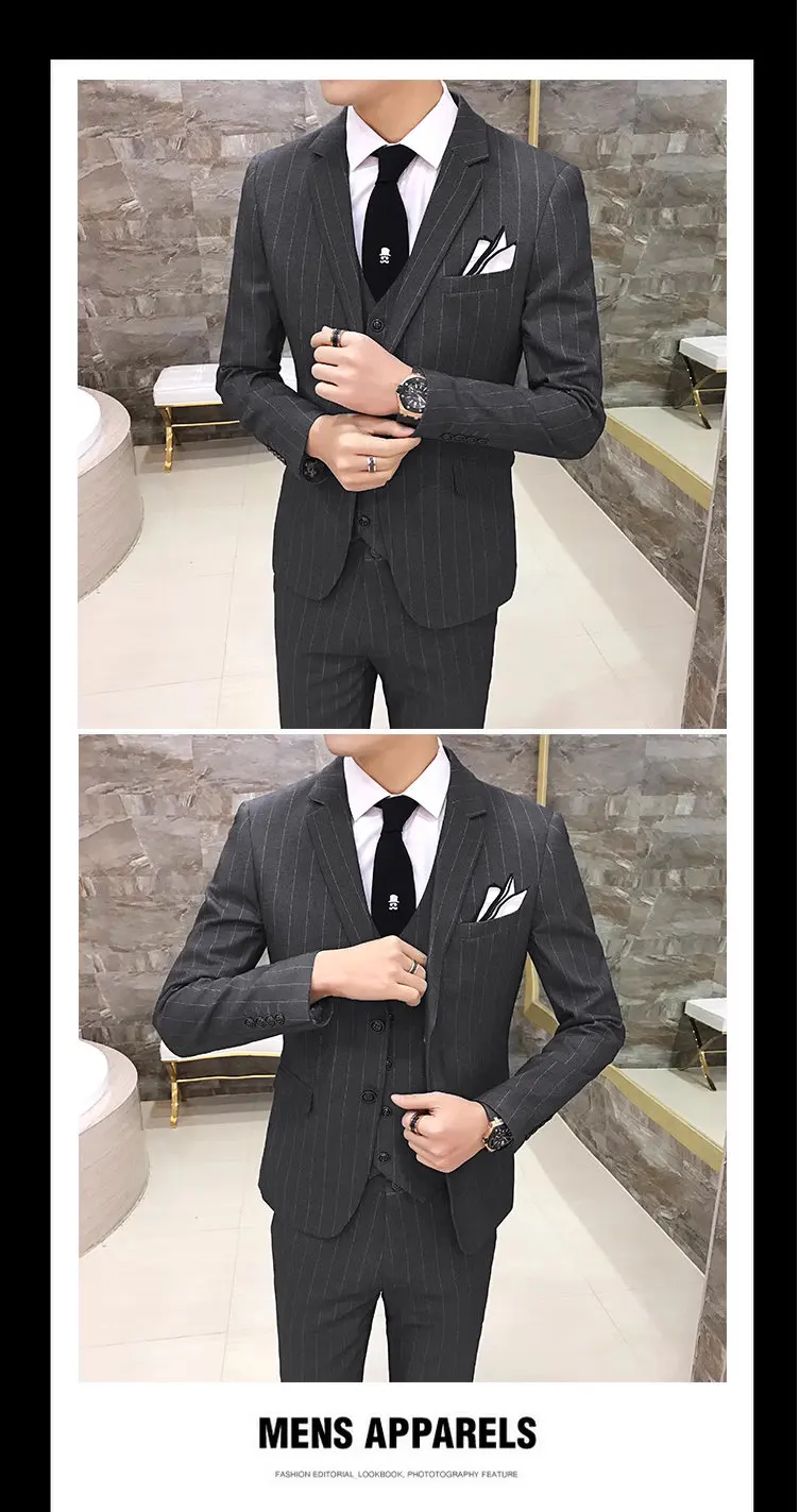 Color: green, Size: S - Gray Men Classic Striped/Checked Suits, Business Office 3 Piece, Asian Size Slim Fit Men Dress Jacket & Pants with Vest, S-4XL