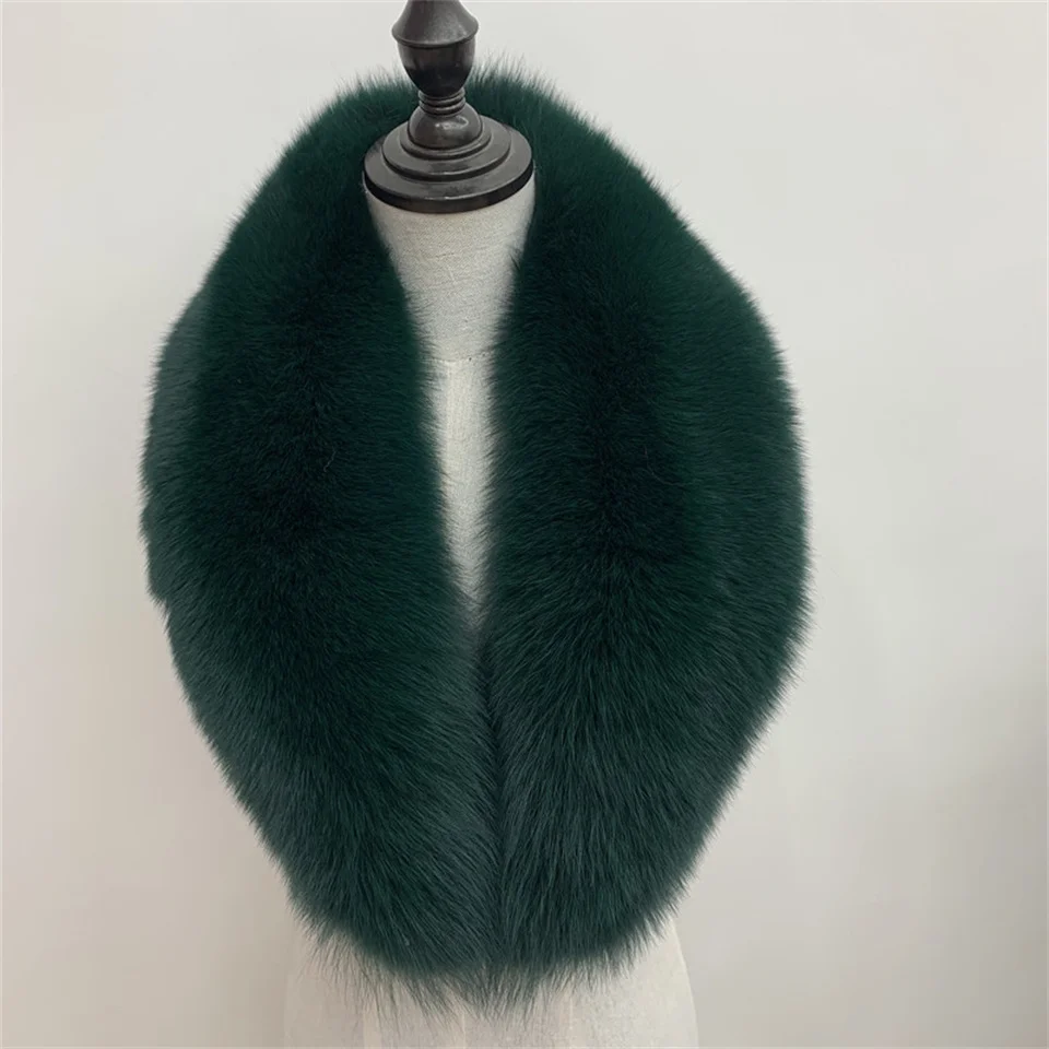 Color: green, Size: S - Winter Real Fox Fur Collar Woman Black Natural Fur Scarf Shawl For Women Collars Wraps Neck Warmer Fur Scarves Luxery Scarf Men