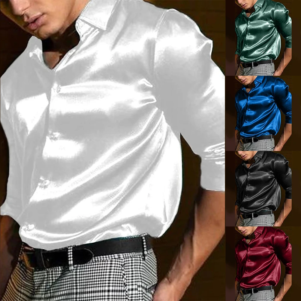 * Item Features:Mens ,Satin Silk, Shiny, Dress Shirt ,Long Sleeve ,Casual ,Button Down ,Shirts ,Disco Club ,Wedding Party