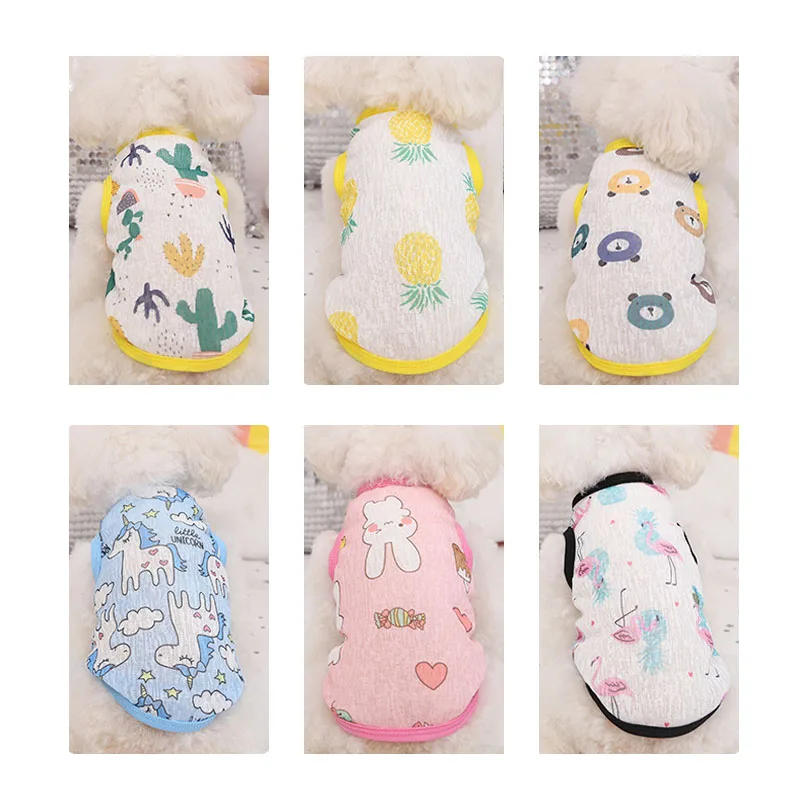 Summer Dog Vest Ultra Thin Breathable Mesh Cloth Pet T-shirt for Small Dogs Cute Cartoon Print Puppy Cat Cheap Clothes Costumes