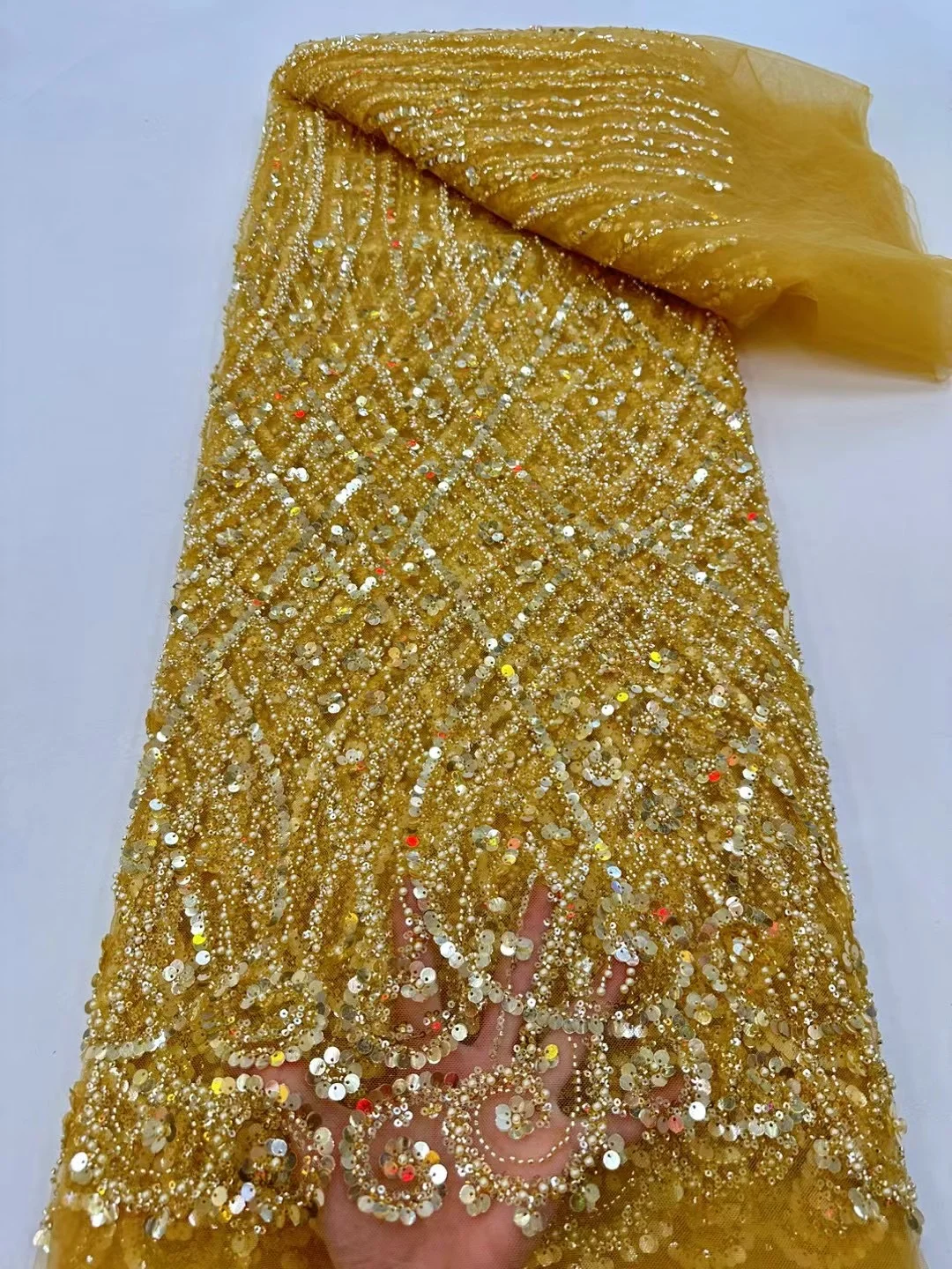 Ni Ai African Sequins Beaded Groom Lace Fabric High Quality French Tulle Lace Fabric 2025 Embroidery Nigerian Lace Fabrics