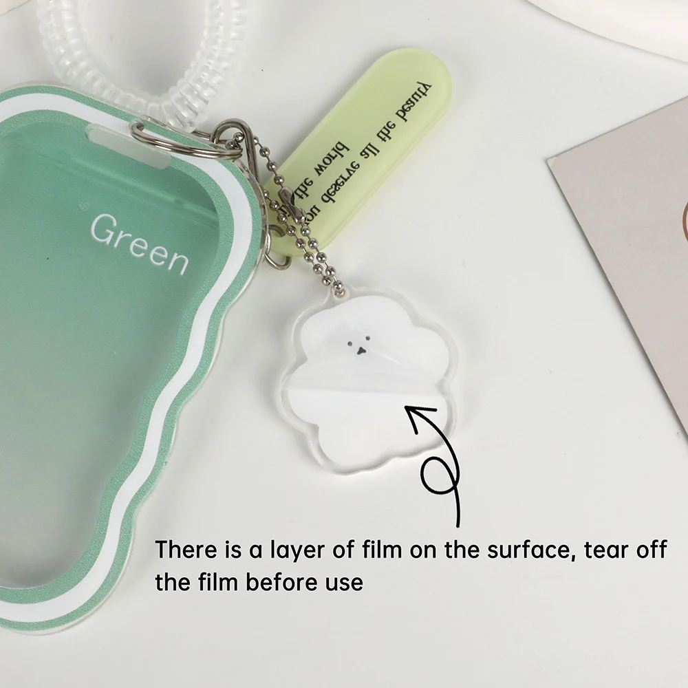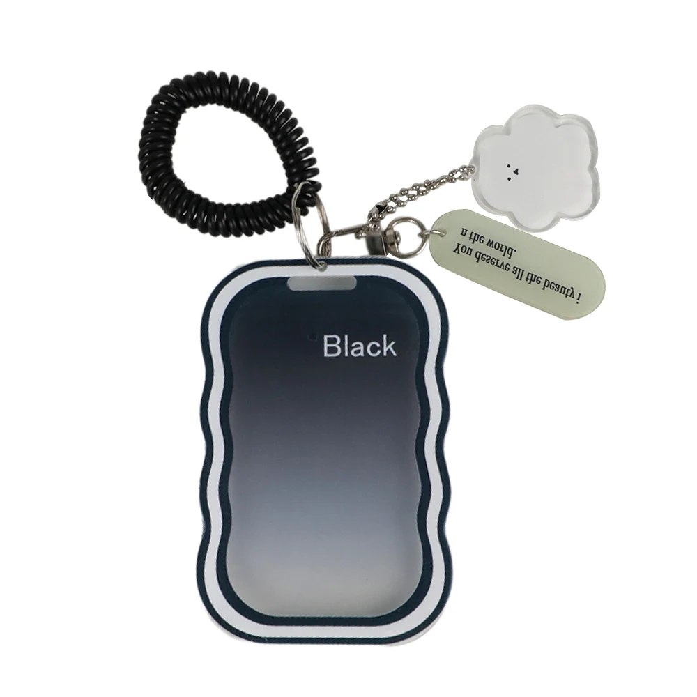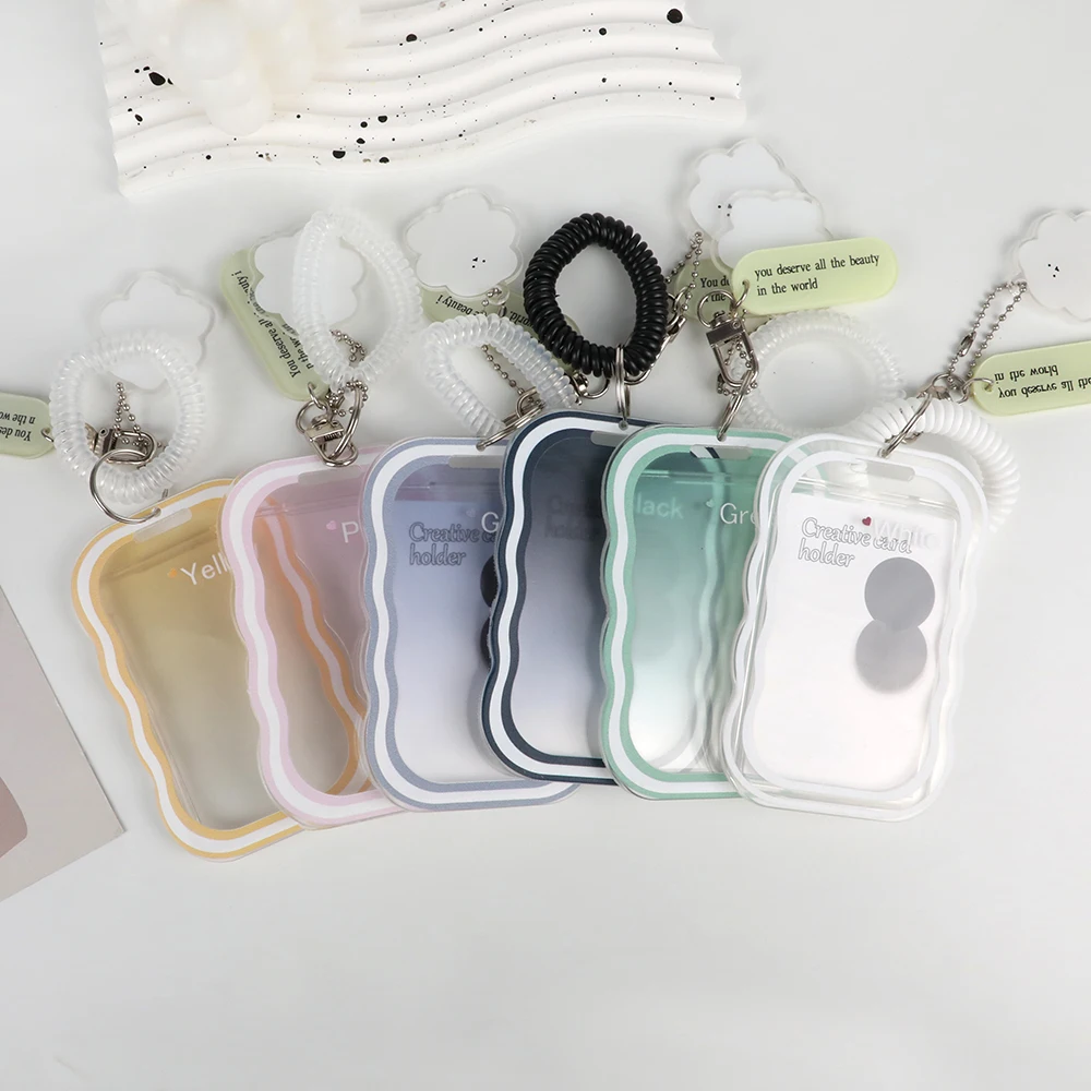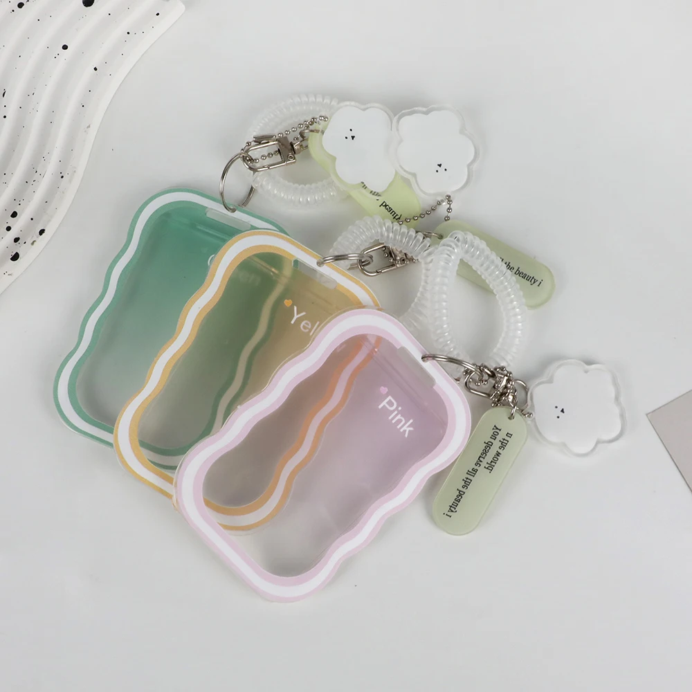 Color: grey - INS Transparent Photocard Holder with Spring Keychain Idol Photo Protective Case 3 Inch Photo Card Holder Student ID Card Cover