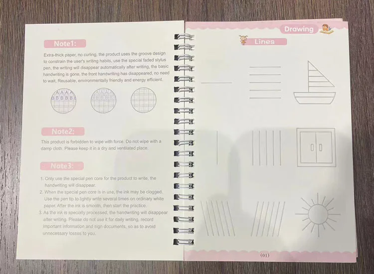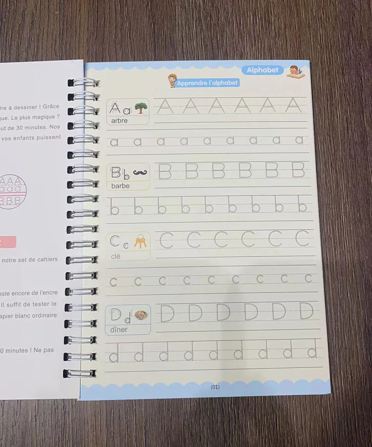 Color: grey - Magic Writing Book in Portuguese Calligraphy Notebook Montessori Kids Reusable Educational Calligraphic Letter Practice Toy