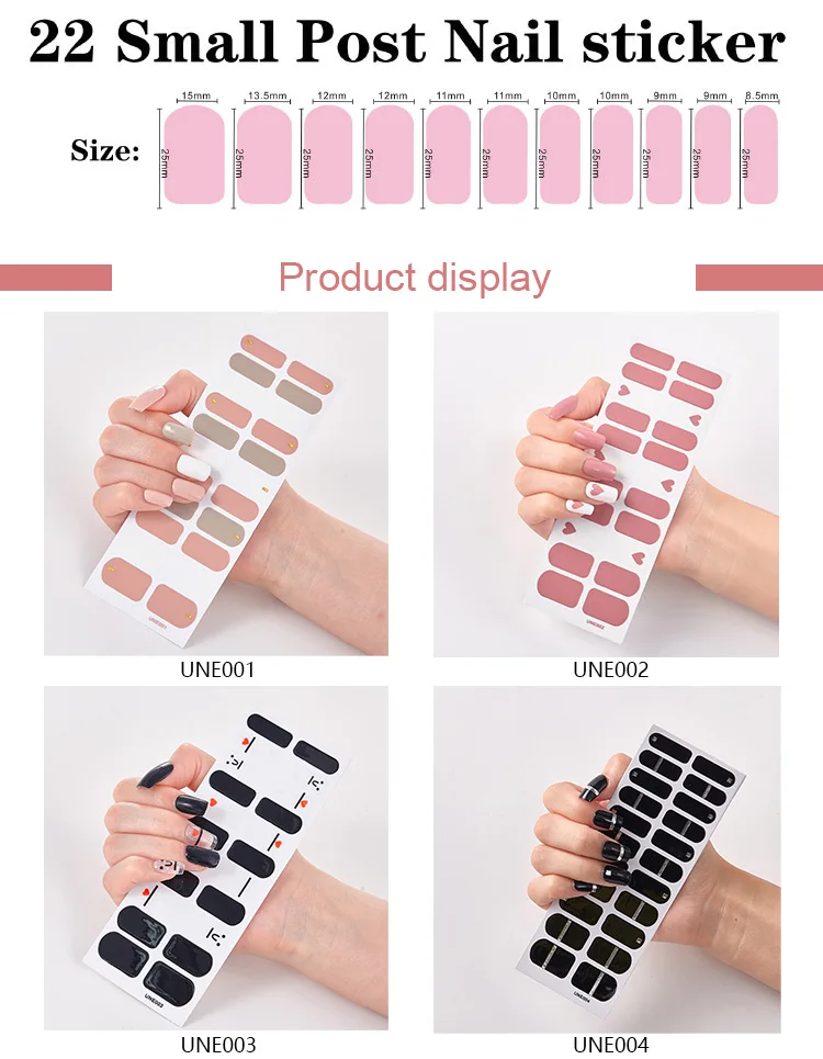 22 Tips/Sheet Solid Color And Striped Manicure Designer Nail Decals Nailart Sticker Full Beauty Nail Tape Manicure Self Adhesive