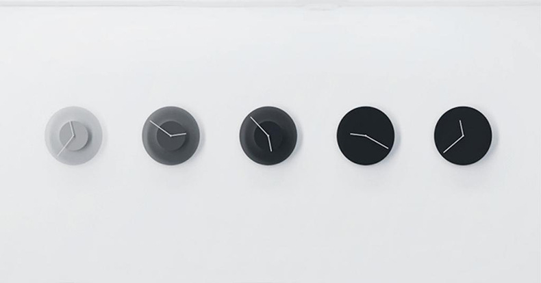 The color change of the template of the clock is automatic. As the minute hand turns, the