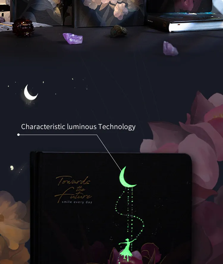 Luminous Cover: The notebook’s luminous cover glows in the dark, adding a unique and magical touch to your desk, and making