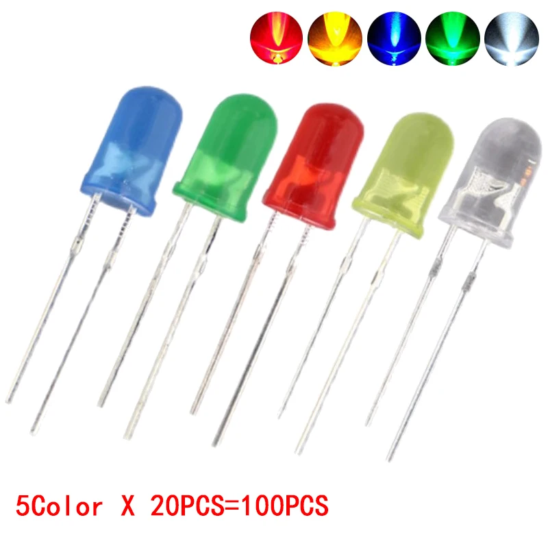 Color: Ivory - 100pcs High quality Transparent Round 5mm Super Bright Water Clear Green Red White Yellow Blue Light LED Bulbs Emitting Diode
