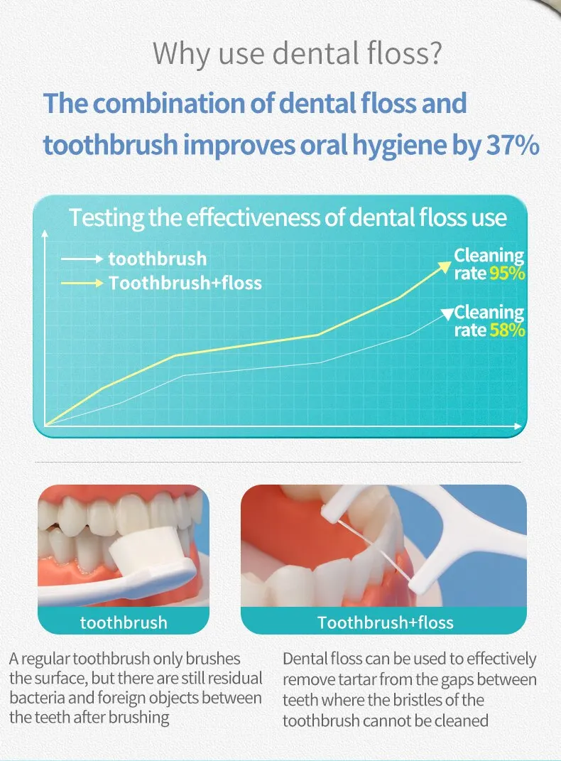 • 150pcs of dental floss :Get a large quantity of dental floss for your oral care needs with this product.