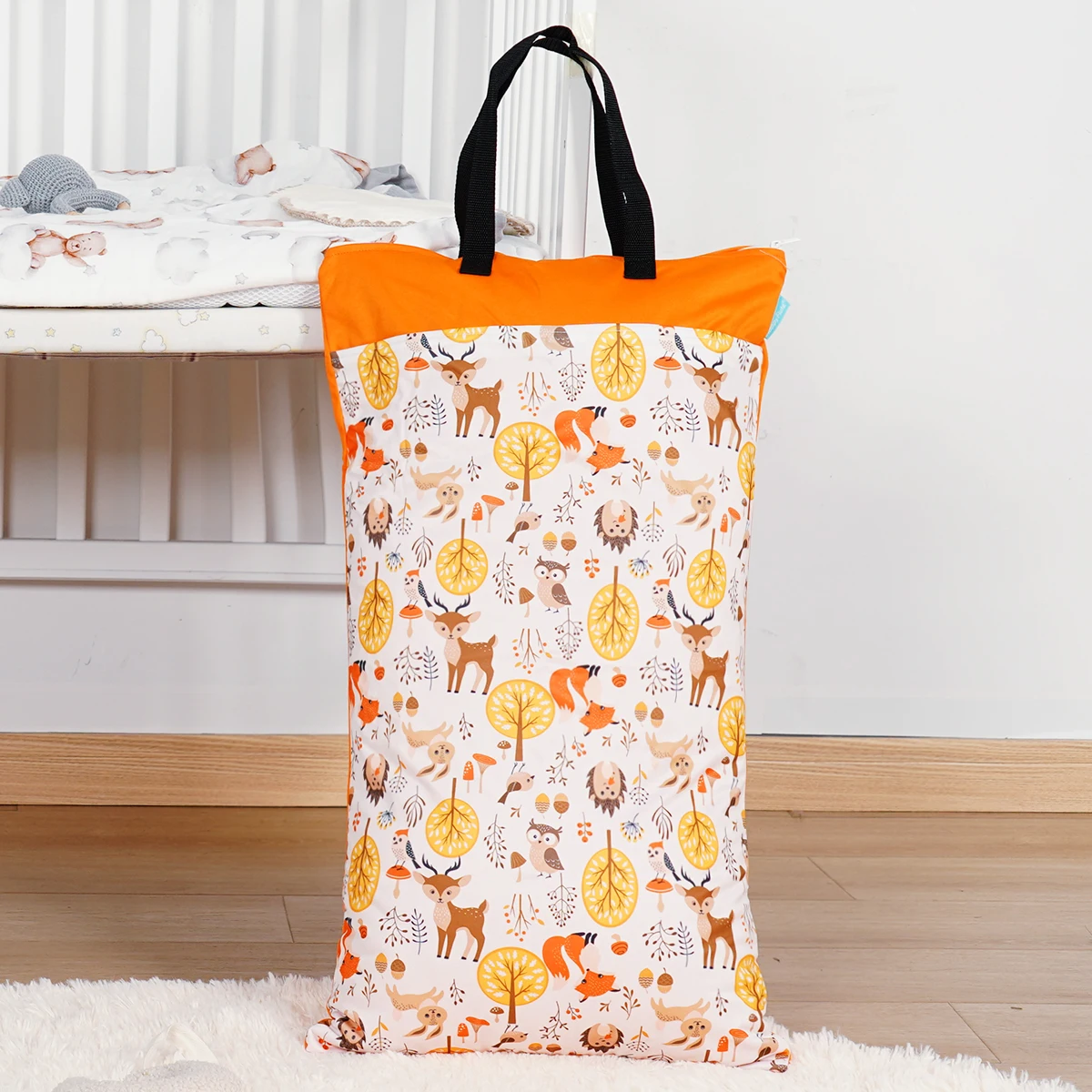 Color: Ivory - Happyflute Reusable Hanging Wet Dry Cloth Diaper Bag With Double Zippered Pockets 40*70cm