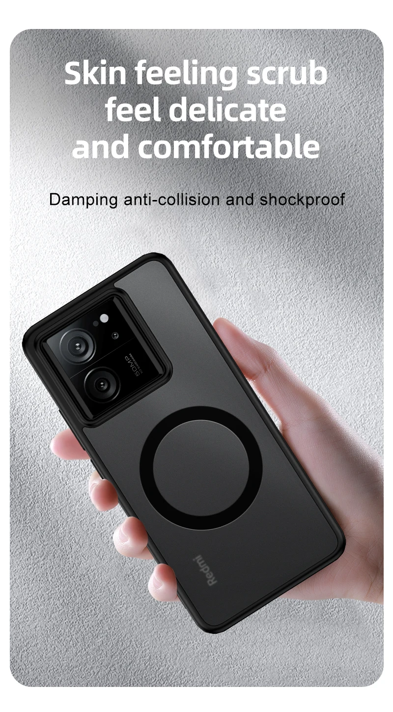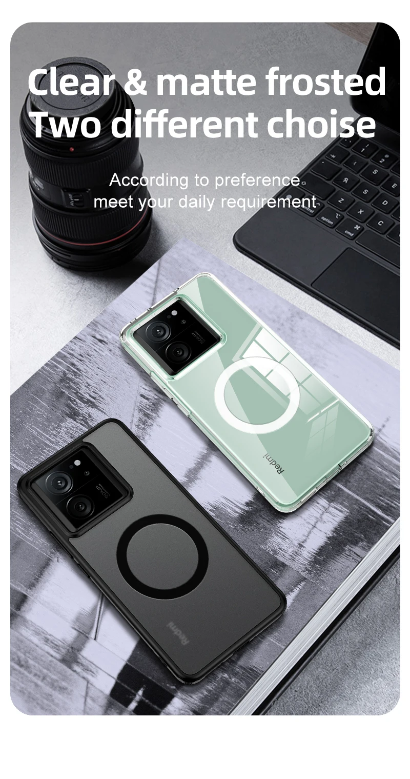 Color: Ivory, Material: ABS - Matte & Clear Magnetic Wireless Charging Armor Magsafe Case For Xiaomi 14 13T Mi 13T 14 Mi13T Pro Military Shockproof Back Cover