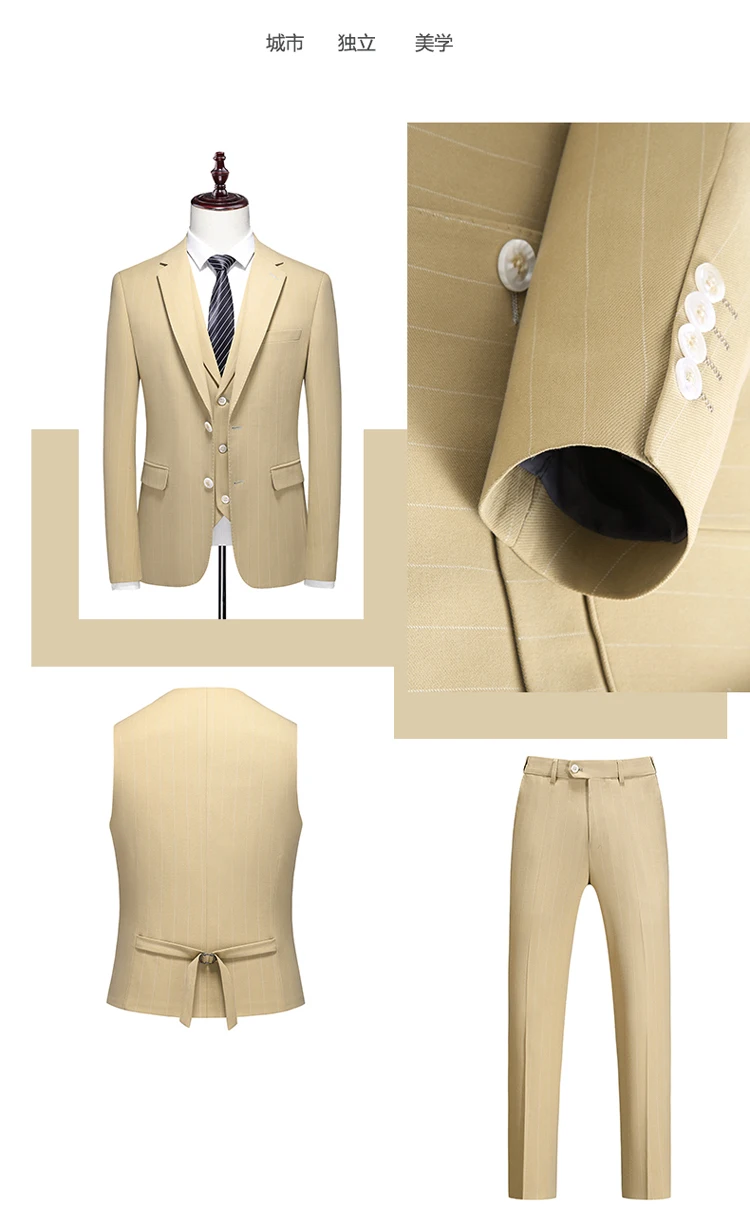 Color: Ivory, Size: S - High-End Three-Piece Men's Wedding Suit with Vest And Trousers Fashion Business Casual Groom's Dress All-In-One