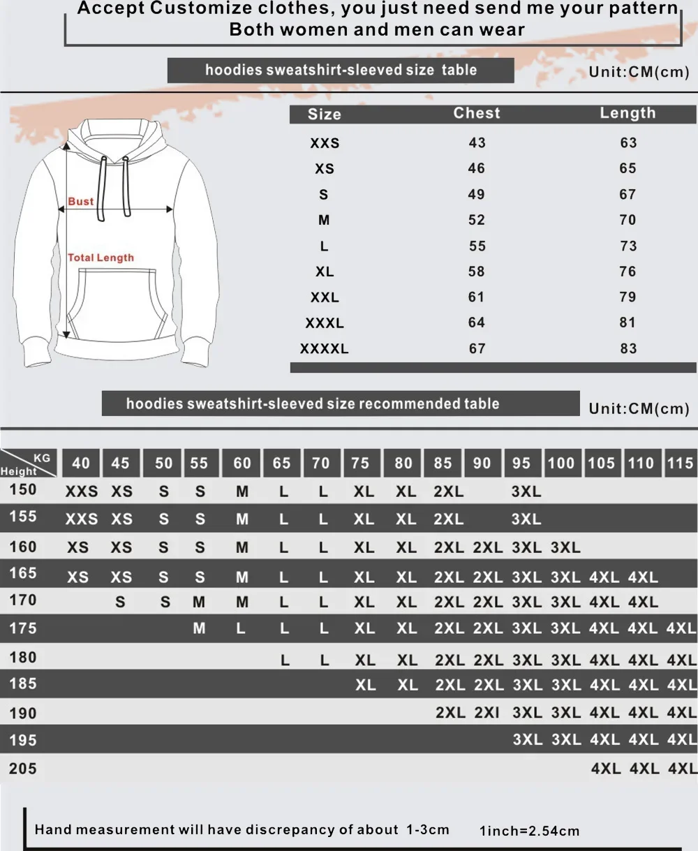Note:Size mearsured by ourselves, sometimes has some errors, but always within 3cm." Please note 1 cm = 0.39 inch,1 inch = 2.54 cm. Please feel free to contact us when finding difficulty in choosing size,we will give you the best option.