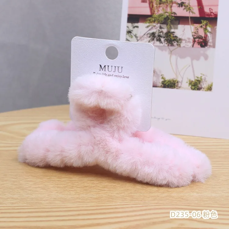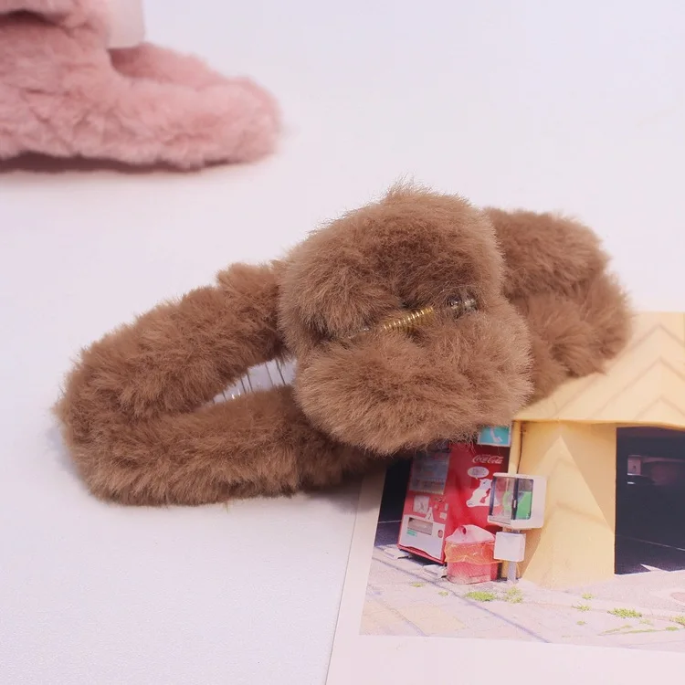 Color: khaki - Advanced Sense Card Hair Clip Korea Autumn and Winter Hair Clip Sweet and Gentle Wind Back Hair Grab Plush Shark Clip