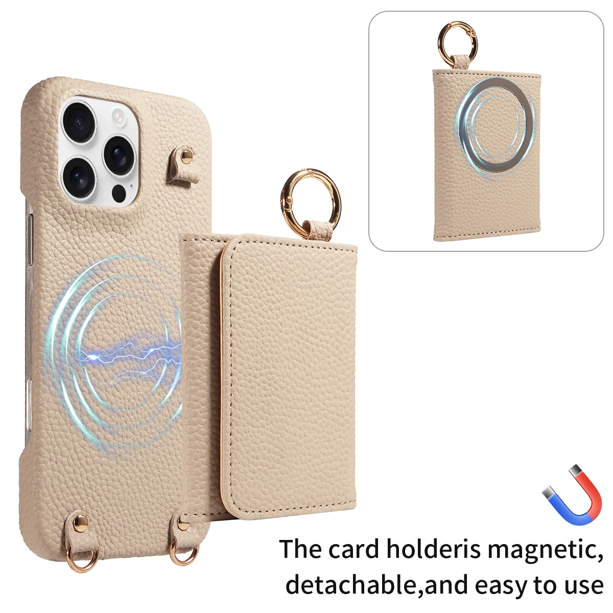 Color: Khaki, Bundle: Case & Strap, Material: Artificial Leather, Compatibility by Model: iPhone 16 Pro - For IPhone16 15 Pro Max 14 13 12 Series PU Leather Magsafe Magnetic Wireless Charging Shockproof Crossbody Wallet Phone Case