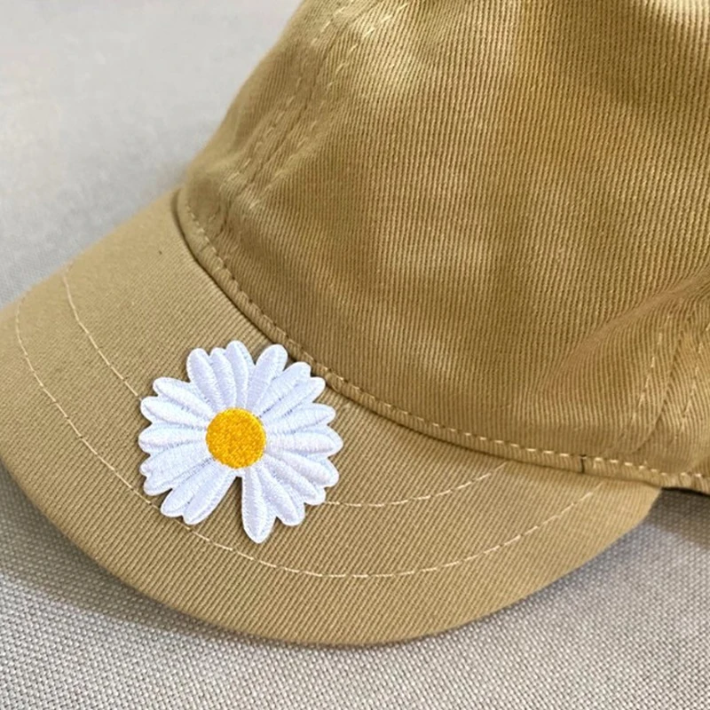 Color: khaki - Butterfly Daisy Embroidery Patches for Clothing Thermoadhesive Patches DIY Fusible Patch on Kids Clothes Sunflower Badges Sewing