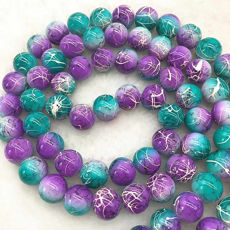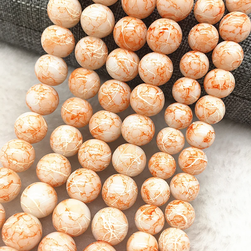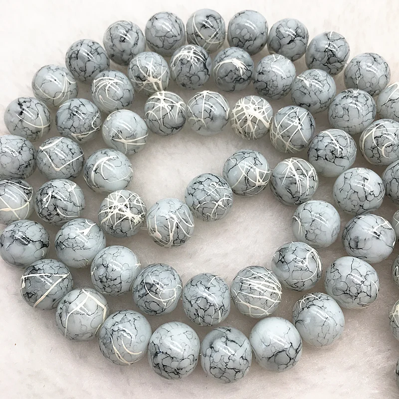 Color: khaki, Item Diameter: 4mm - Wholesale 4/6/8/10mm Glass Beads Round Loose Spacer Beads Pattern For Jewelry Making DIY Bracelet Necklace