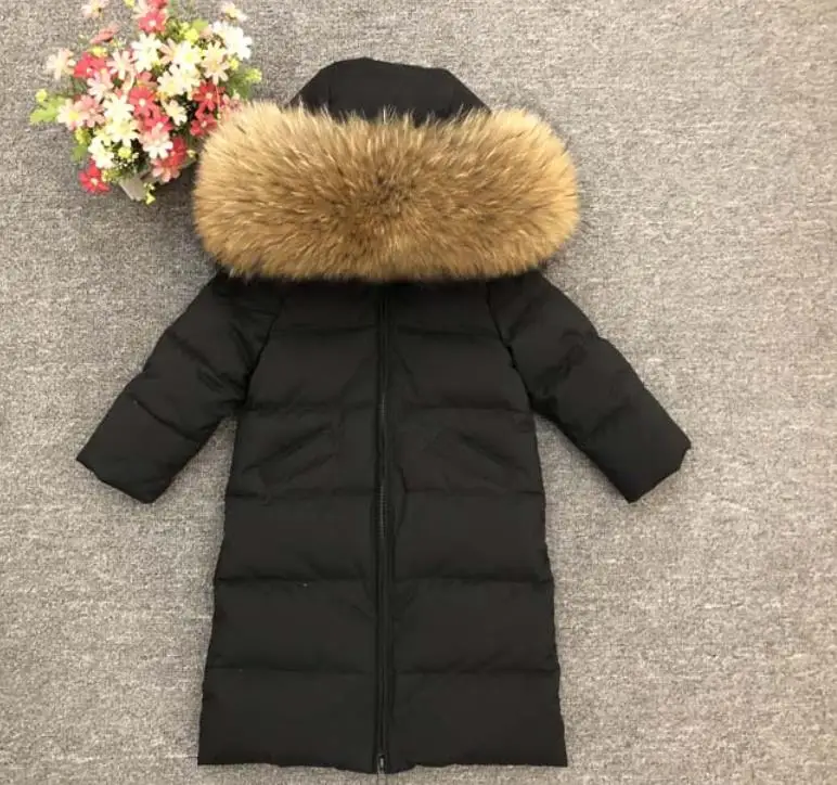 Color: Khaki, Kid Size: 2T - Children Girl boy Winter real fur thickened down jackets 90 down Long Coat jacket overcoat baby kids clothing -30 outwear ws1245