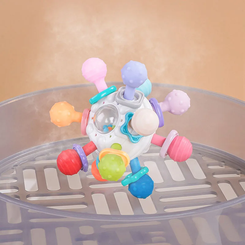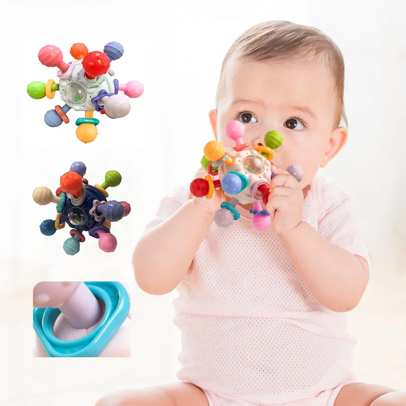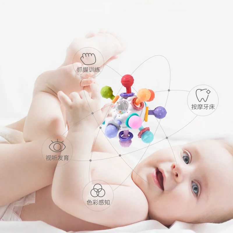 Montessori Baby Toys 0 12 Months Rotating Rattle Silicone Teething Toys Ball Grasping Activity Development Toy Baby Sensory Toys