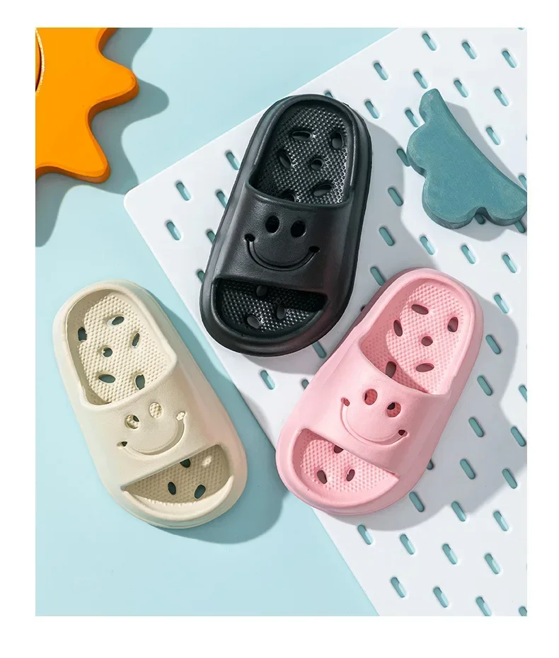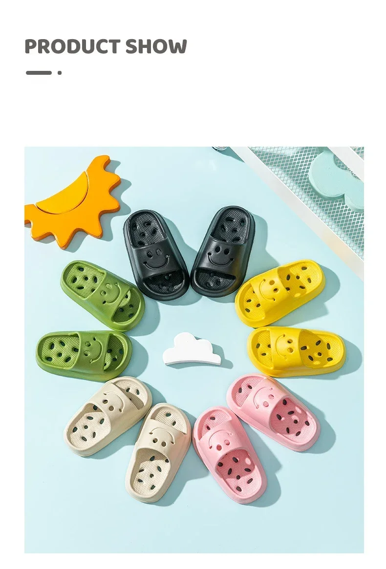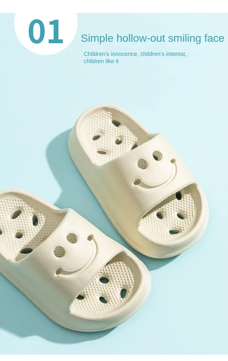 Children Slippers Boys EVA Smiling Face Bathroom Slippers Summer 2-14 Years Old Girl Anti Slip Hollow Leaking Junior Footwear
