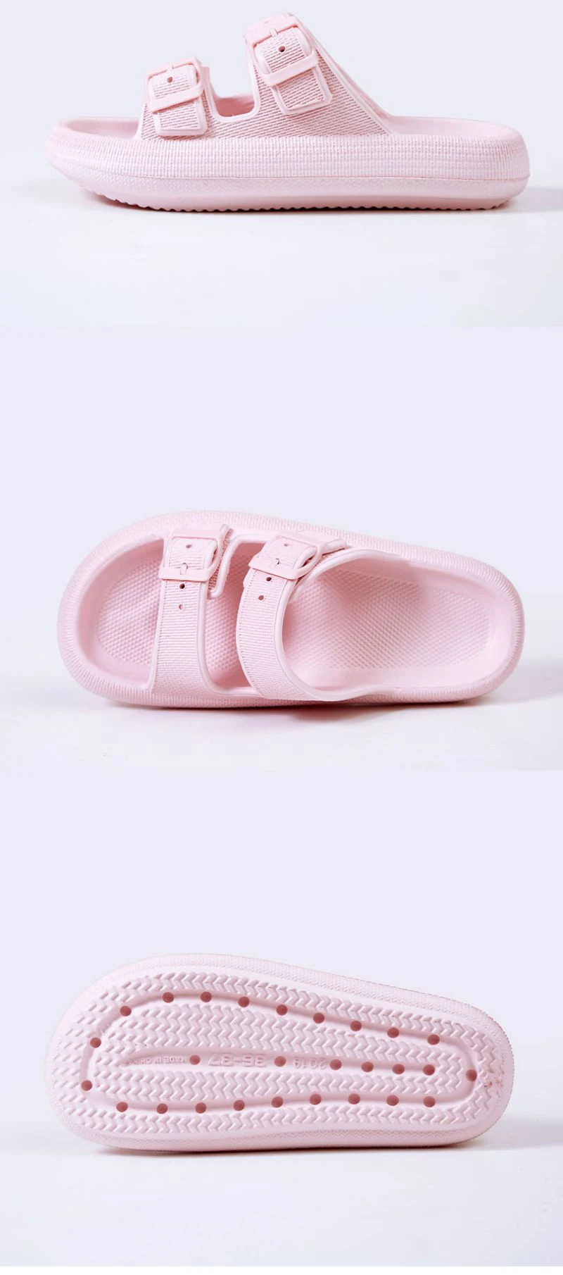 Color: Khaki, Shoe Size: 4.5 - Fashion Buckle Thick Platform Slippers Women Home Soft Sole eva Cloud Slides Sandals Woman 2023 Summer Non Slip Beach Flip Flops