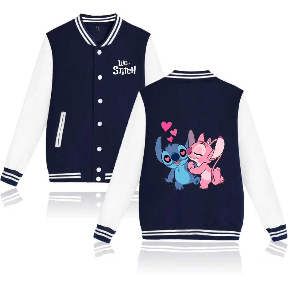 Color: Khaki, Size: L - Lilo Stitch Baseball Jacket Men Women Hip Hop Harajuku Jackets Streetwear Kids Boys Girls Loose College Coats
