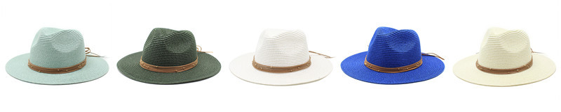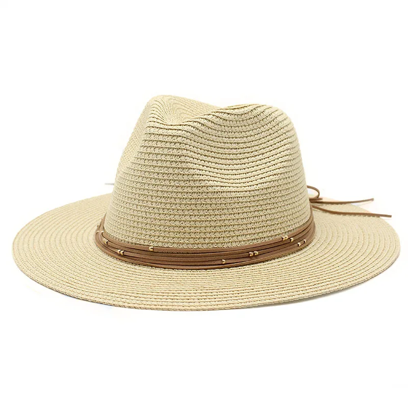 Color: Khaki, Size: M - Big Size 60CM New Straw Hat 7cm Brim Summer Cooling Beach Sun Hat Outdoor Party Panama Jazz Hat Sombreros De Mujer