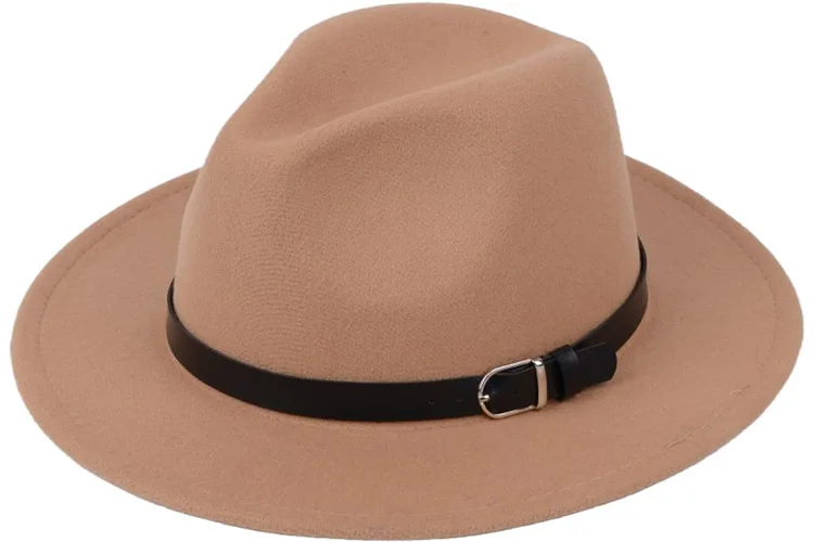 Color: Khaki, Size: M - Classic British Fedora Hat Men Women Imitation Woolen Winter Felt Hats Fashion Jazz Hat Chapeau Wholesale