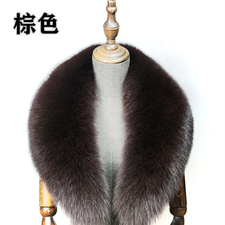 Fox Fur Collar 100% Real Fox Fur Scarf Straight Collar Natural Fur Gray Collar Large Size Neck Warmer Fur Scarf Shawls
