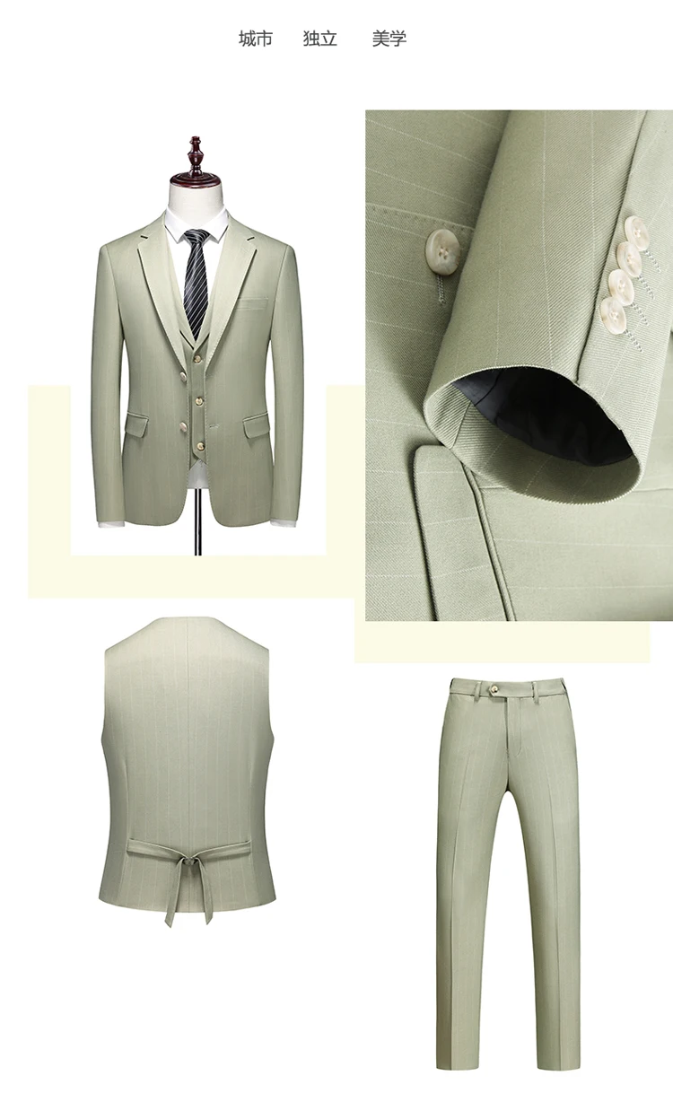 Color: Khaki, Size: M - High-End Three-Piece Men's Wedding Suit with Vest And Trousers Fashion Business Casual Groom's Dress All-In-One