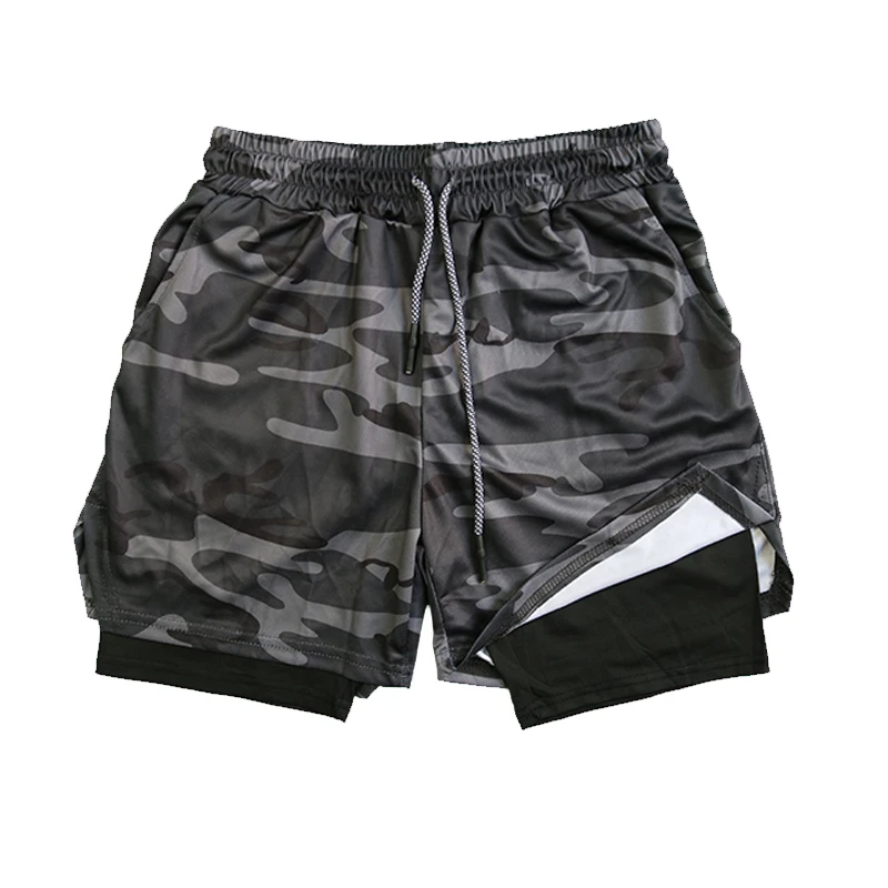 Color: Khaki, Size: M - Men's Double Layer Fitness Shorts Drawstring Mesh Lining Elastic Waist Breathable Quick Dry to Beach Pool Summer Male