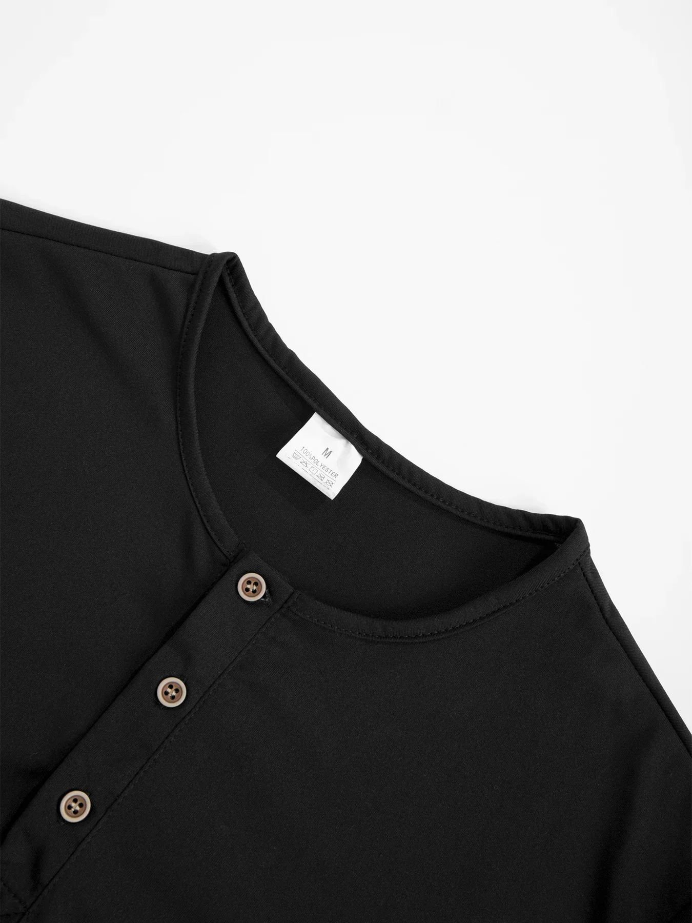 Color: Khaki, Size: M - Men's Long Sleeved Henley Neck T-shirt Slim Fit Bottoming Shirt Fitness Tops Tees Button Neck Casual Cozy Tshirt