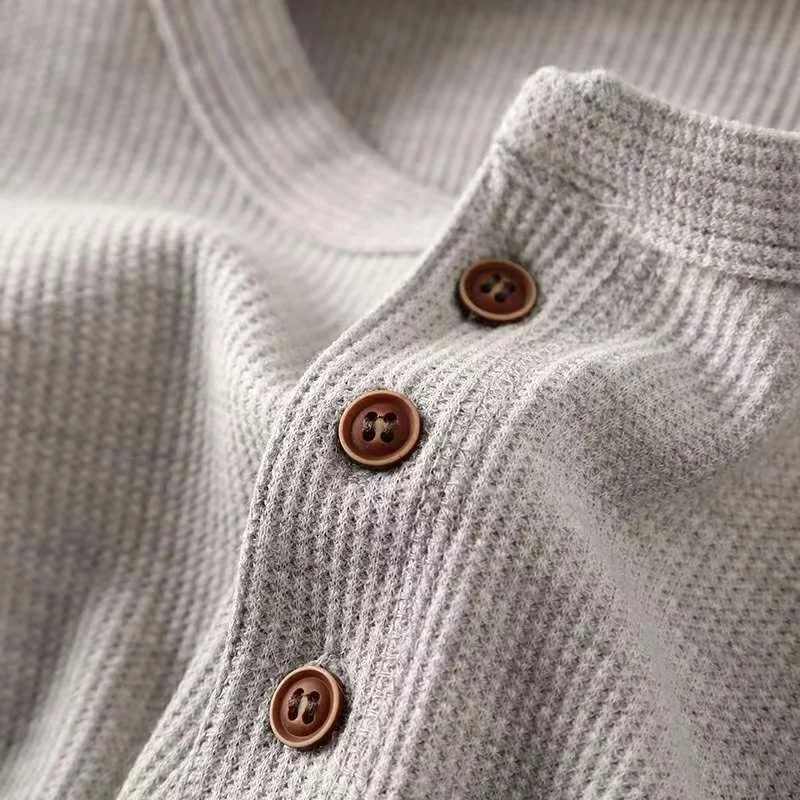 Color: Khaki, Size: M, Ships From: CHINA - Slim Fit Mens Basic Tee Casual Tshirts Henley Waffle Long Sleeve Shirts Thermal Solid Half Button Breathable 100% Cotton Shirts