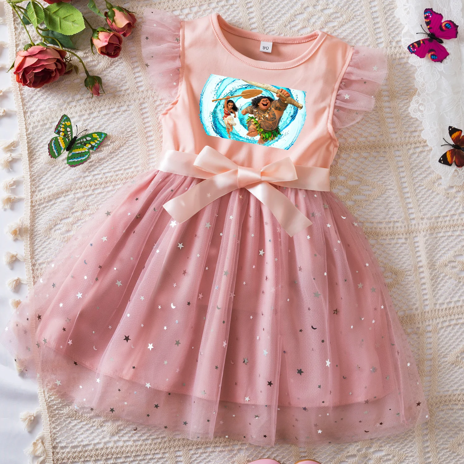 Color: Khaki, Size: XS - Moana Summer Toddler Girl Dress Princess Star Baby Girls Clothes Tulle Tutu Dress for Children Party Dress 2-6Y