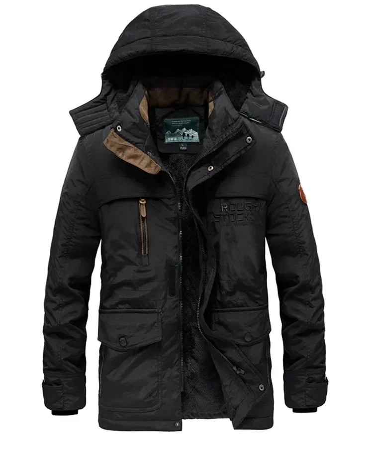 Color: Khaki, Size: XXL - TELLHIGH 2024 Winter Parka Men Jacket Mens Plus Velvet Men Hooded Windbreaker Coats Men Casual Warm Jackets Coat Detachable Hat