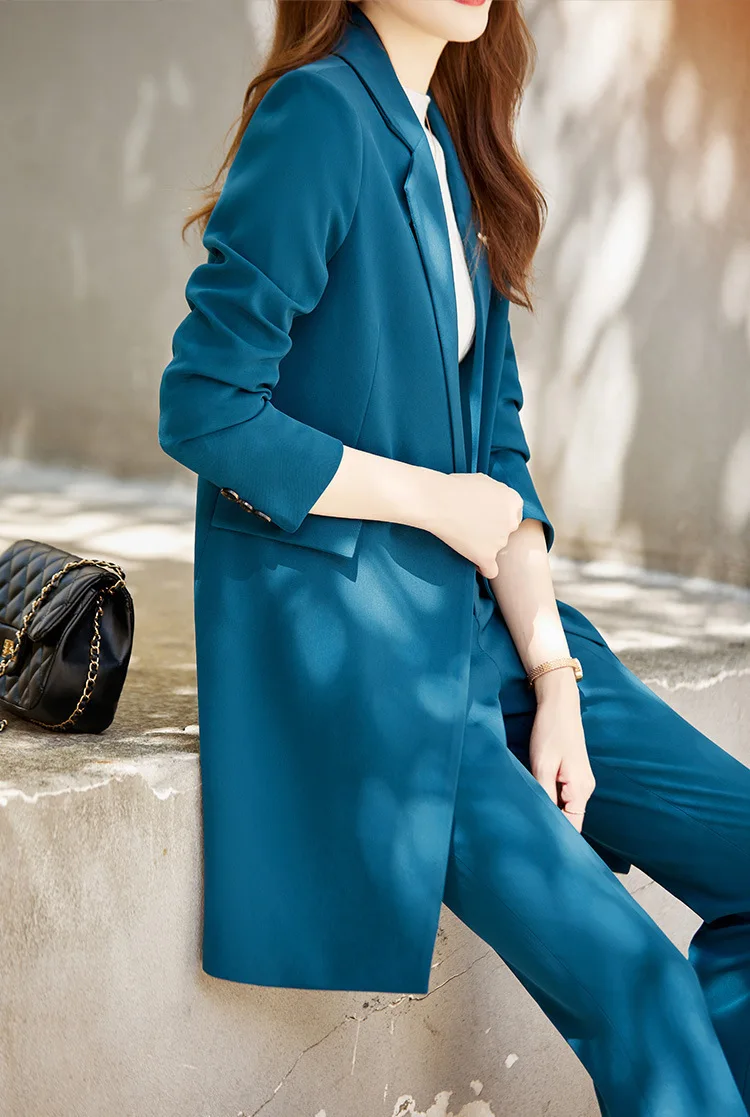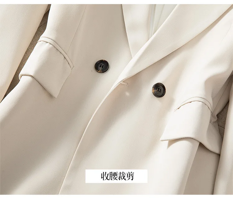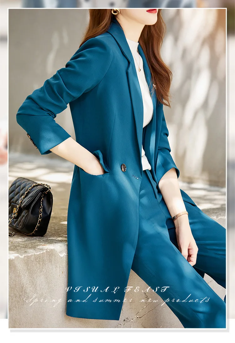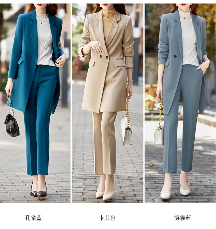Color: Khaki, Size: XXXL, Ships From: CHINA - High End Office Professional Women's Blazer Pants 2-Piece Set Fall Fashion Long Female Jacket Over Business Suit Casual Trousers