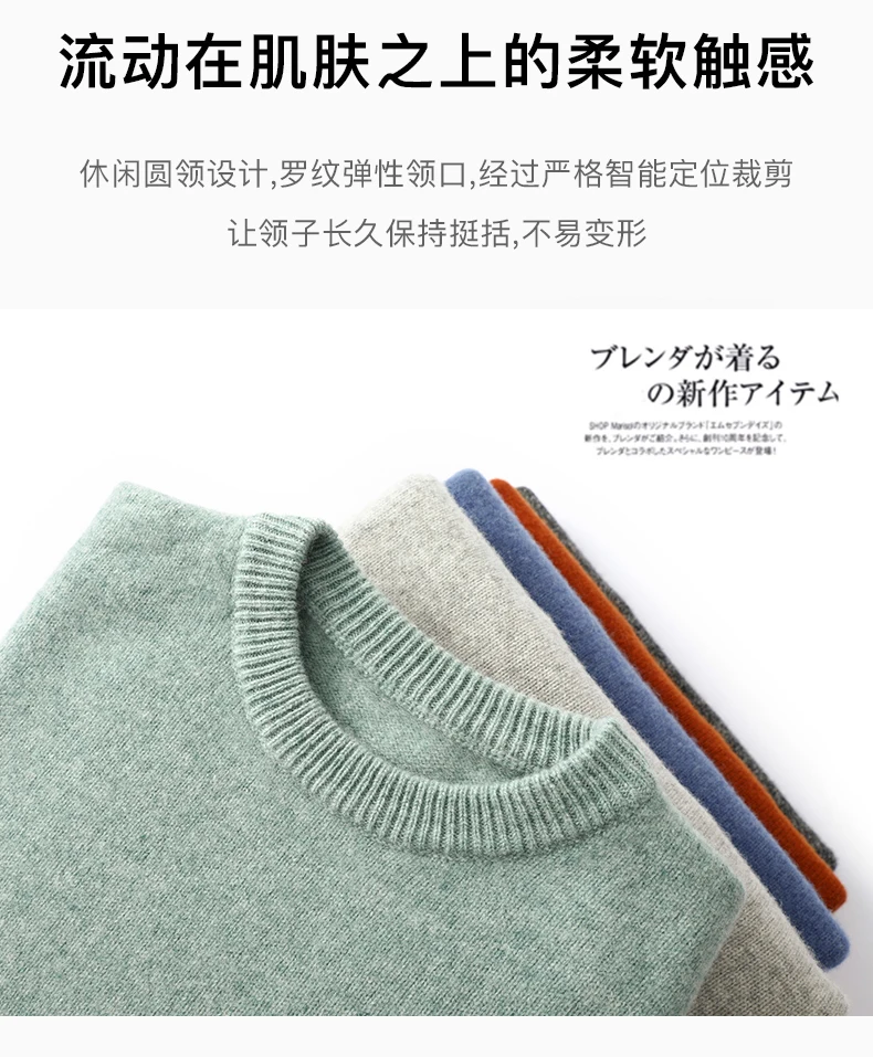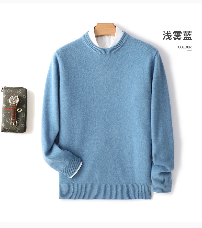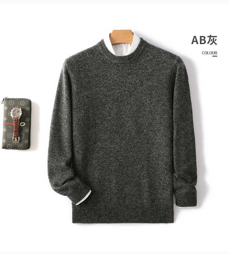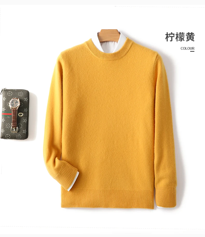Color: Khaki, Size: XXXL, Ships From: CHINA - Men's 100% Pure Wool Cashmere Sweater O-Neck Pullover Knit Sweater Autumn and Winter New Long Sleeve High-End Jumpers Thick Tops