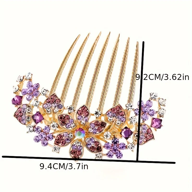 Color: Lavender - 1PC Elegant Rhinestone Hair Comb Flower Shaped Headwear Women Hair Jewelry Accessories