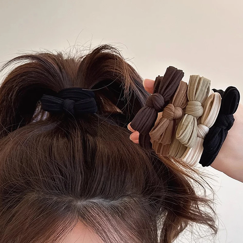 Color: Lavender - 5pcs/Set Candy Color Bow Hair Rope High Elastic Seamless Rubber Band For Women Girls Ponytail Holder Summer BB Hair Ties Ring