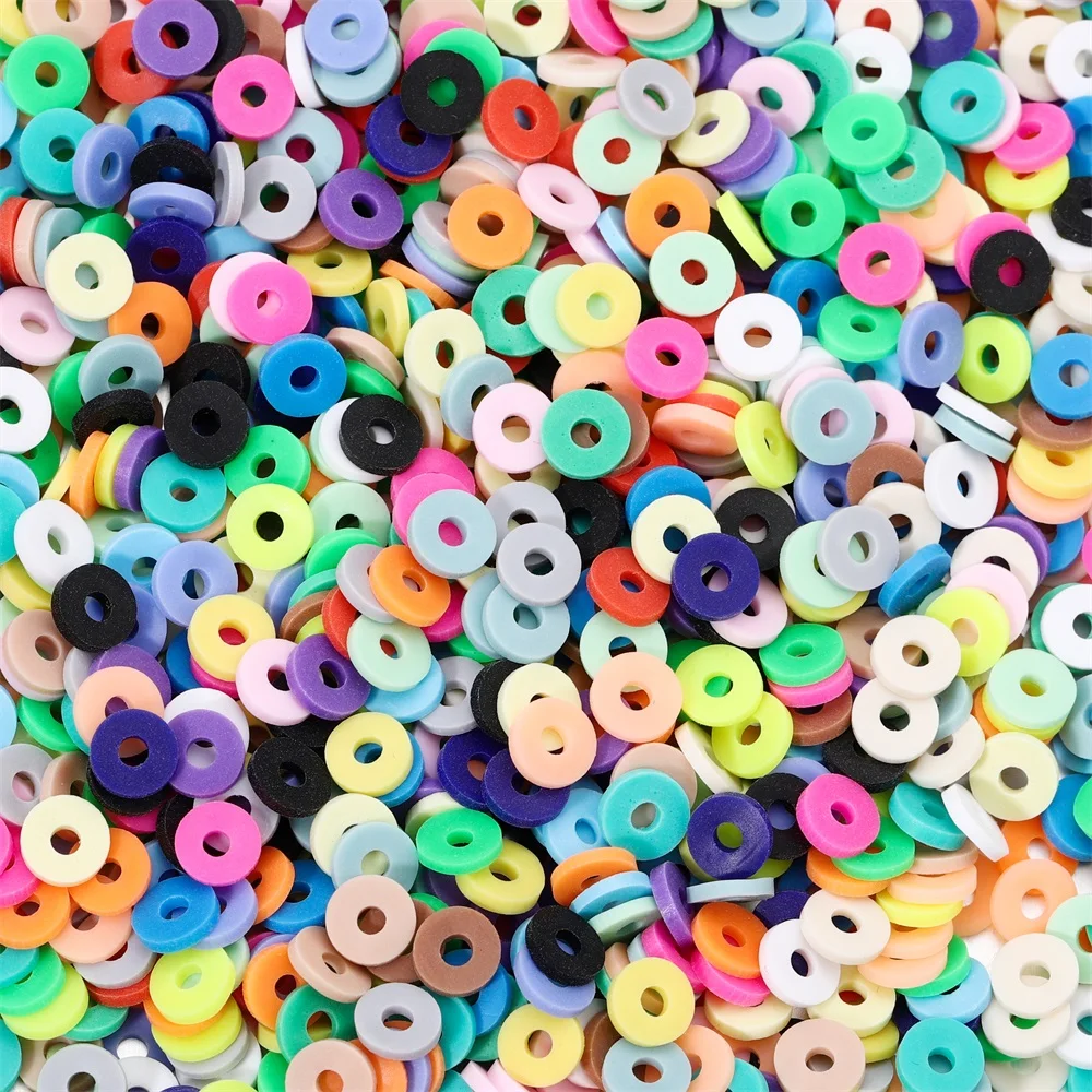 16Inch/Line 6mm Colorful Flat Round Polymer Clay Beads Loose Spacer Beads for DIY Jewelry Making Bracelet Necklace Accessories